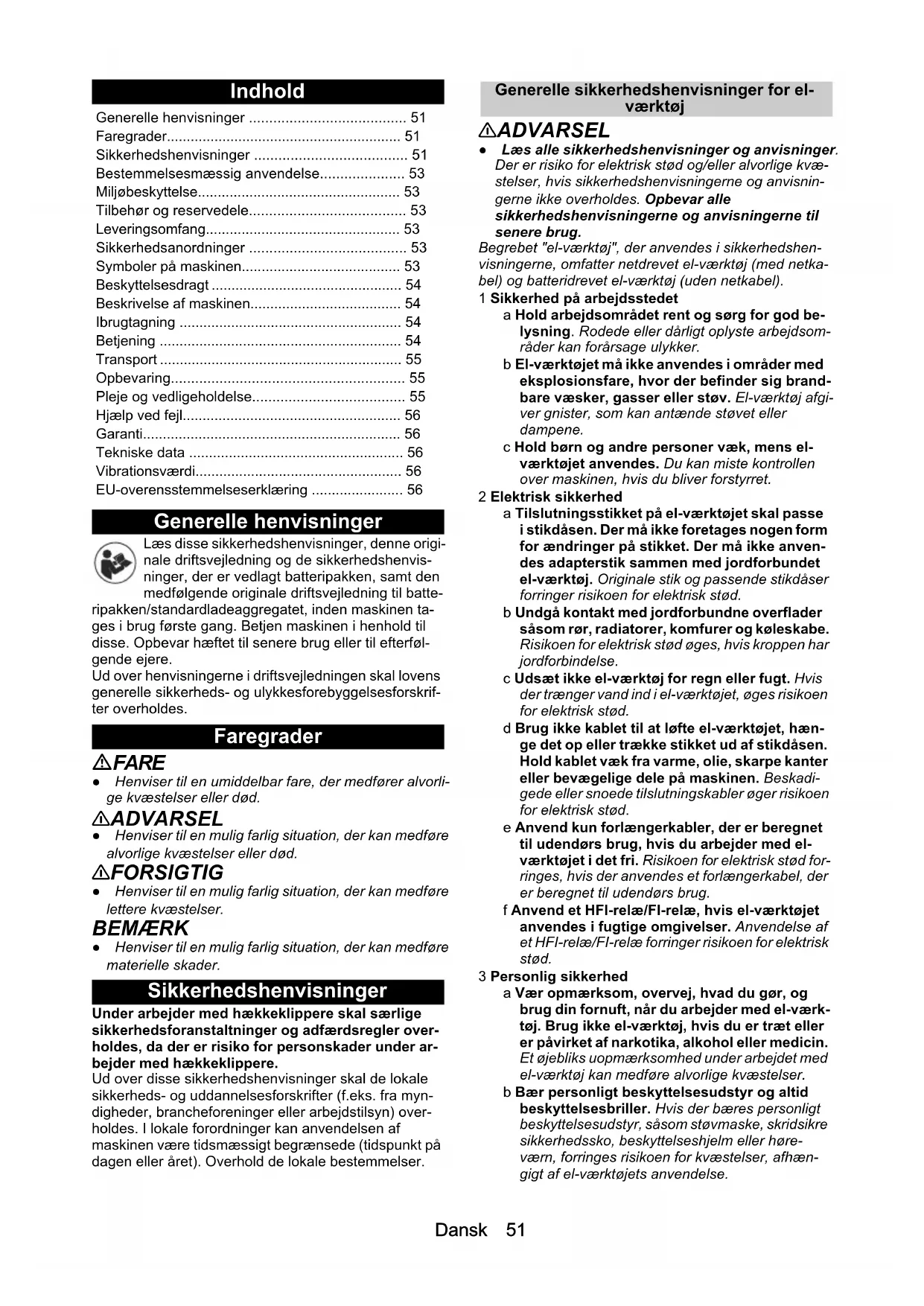 - Sikkerhedshenvisninger p. 51