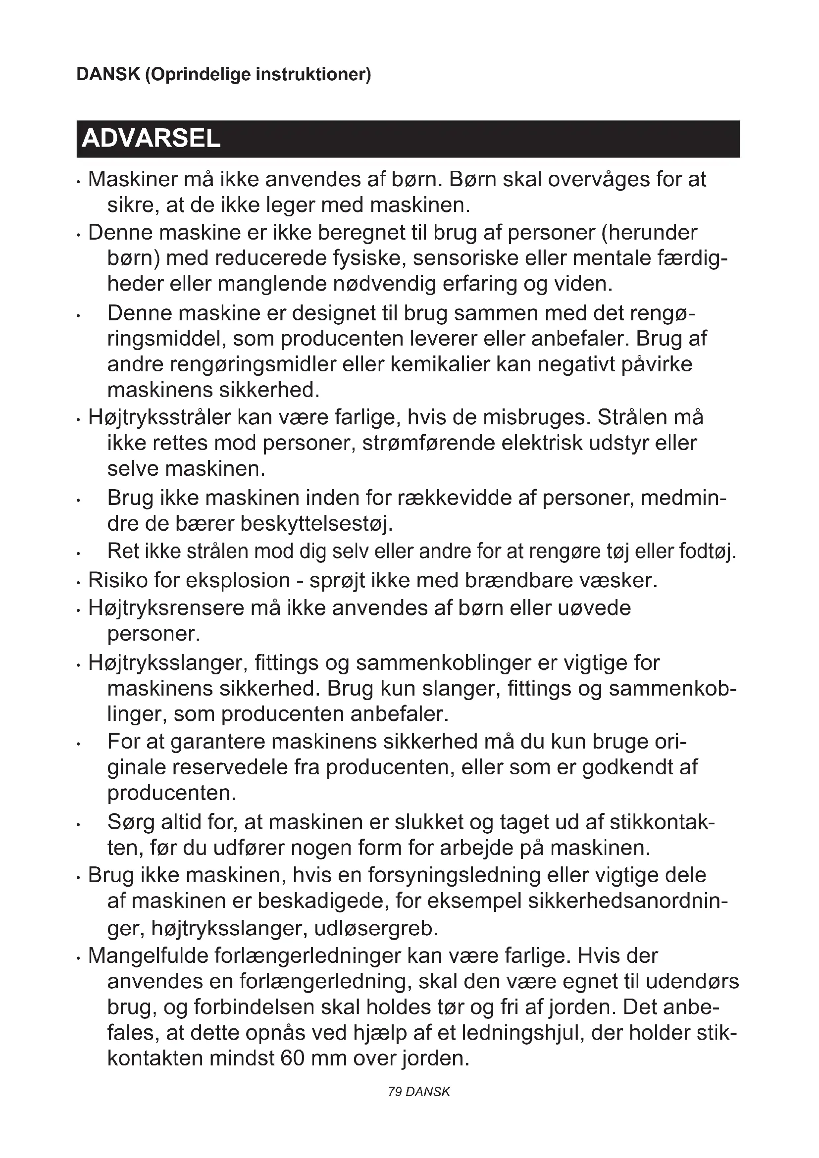 - Højtryksrensere må ikke anvendes af børn eller uøvede personer.