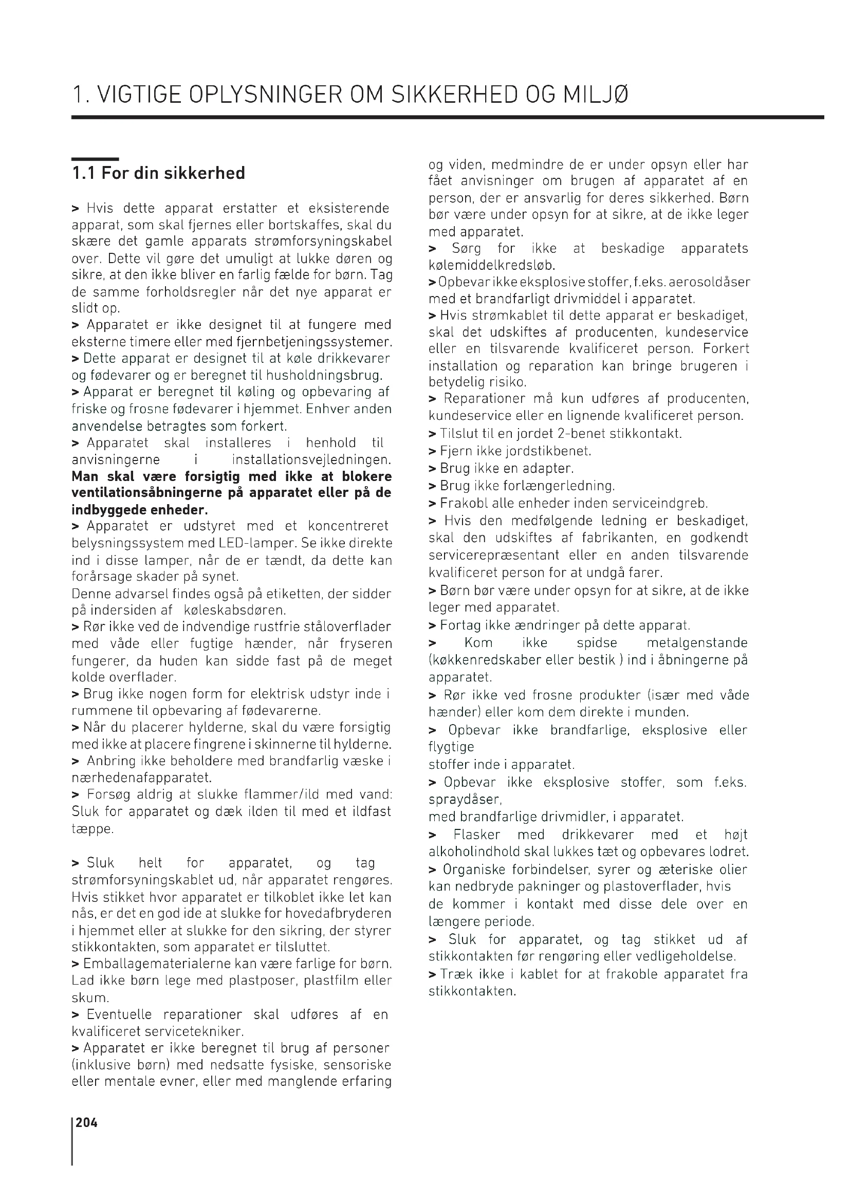 1. VIGTIGE OPLYSNINGER OM SIKKERHED OG MILJØ