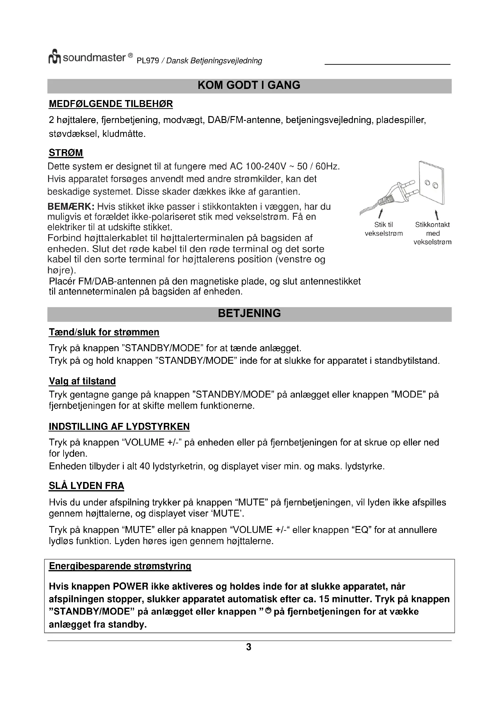 BRUGSANVISNING PL979 Soundmaster