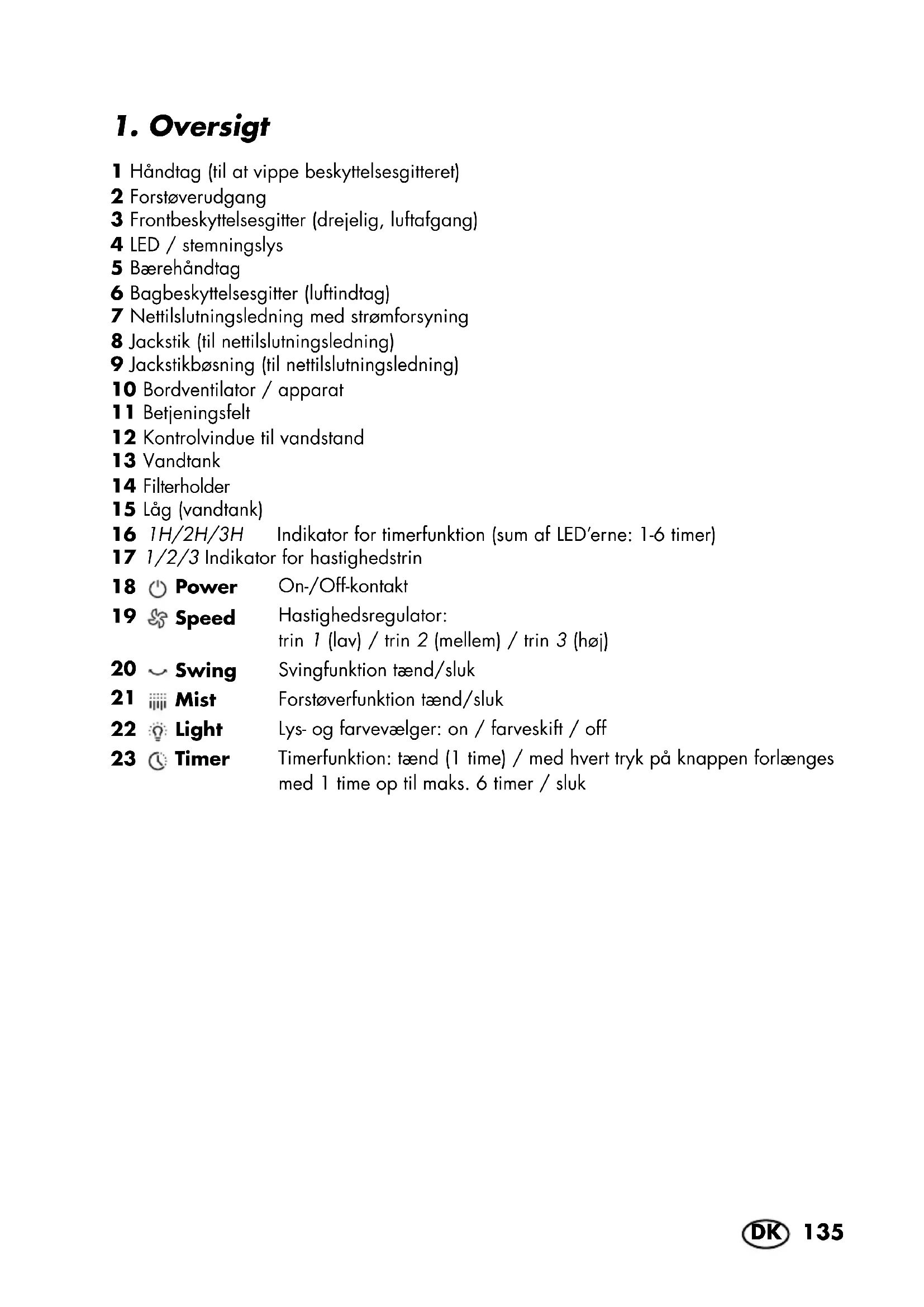 - Hvis apparatet gives videre til anden bruger, bedes denne betje- ningsvejledning vedlagt. Betje- ningsvejledningen er del af apparatet. Vi ønsker dig god fornøjelse med din nye bordventilator med forstøverfunktion! Symboler på apparatet Dette symbol viser dig, at vandtan- ken senest efter 72 timer (3 dage) skal tømmes, renses og igen fyldes med frisk vand for at undgå sund- hedsrisici.