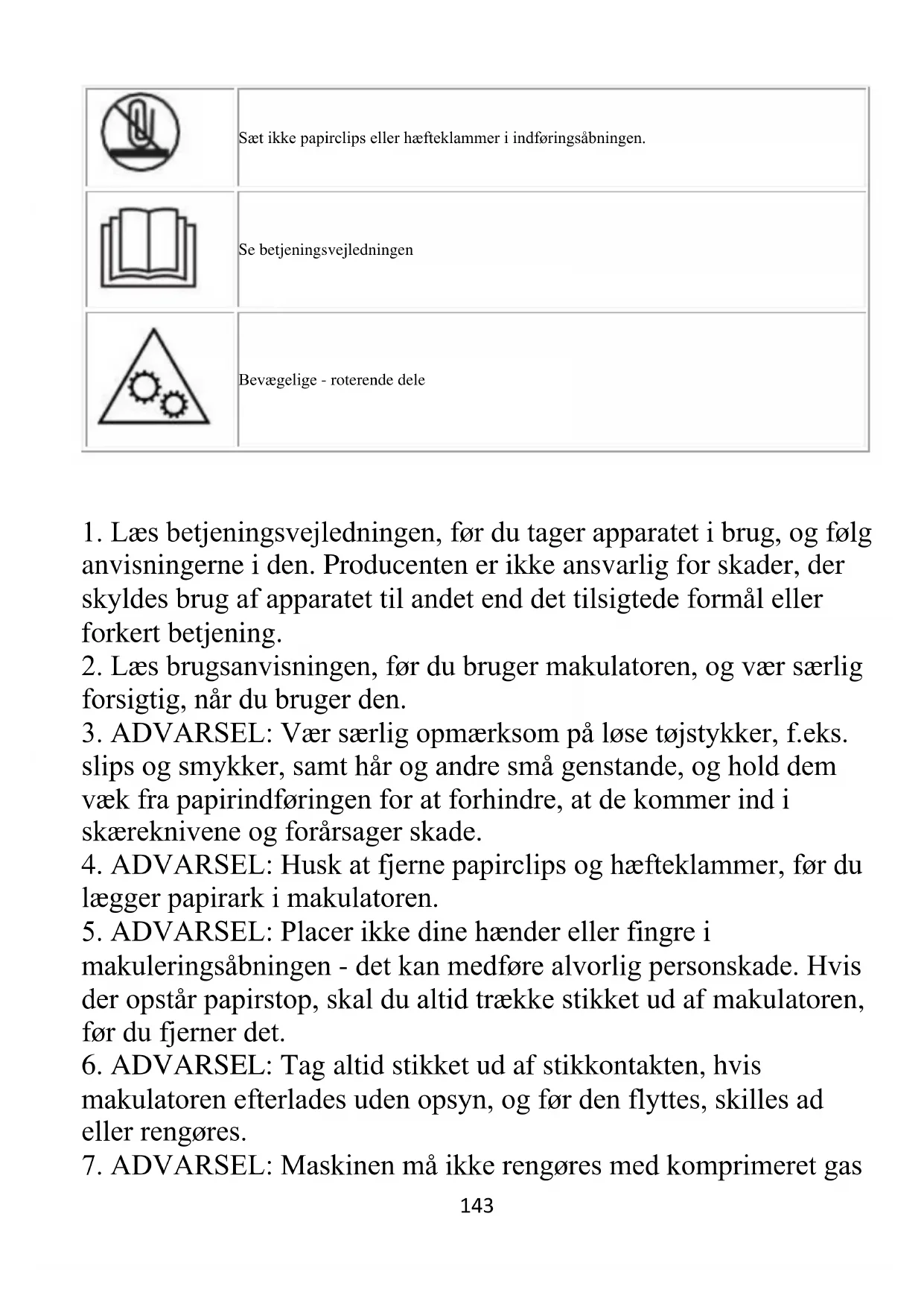 2. Læs brugsanvisningen, før du bruger makulatoren, og vær særlig