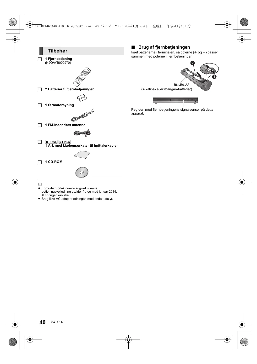 1 CD-ROM ≥ Korrekte produktnumre angivet i denne betjeningsvejledning gælder fra og med januar 2014. Ændringer kan ske. ≥ Brug ikke AC-adapterledningen med andet udstyr.