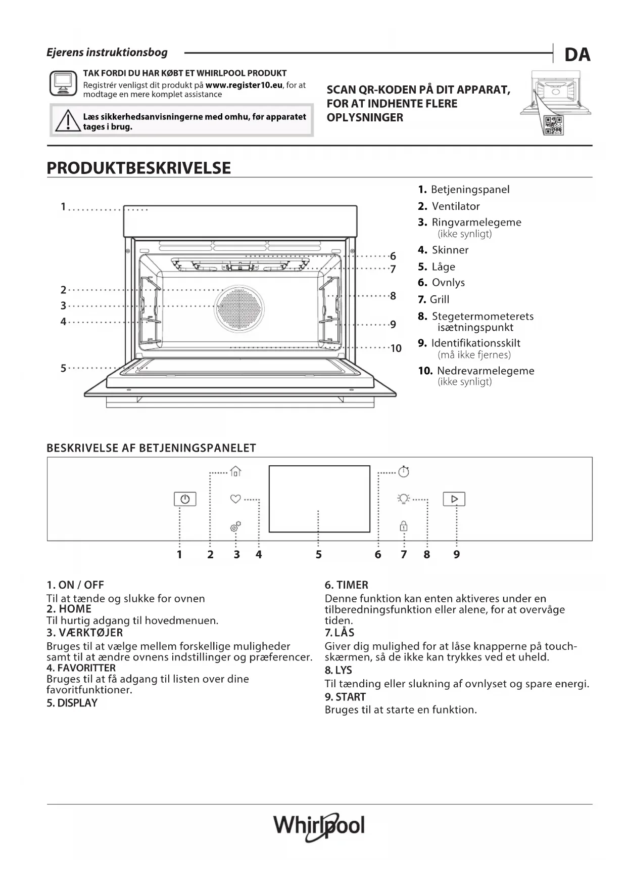 OPLYSNINGER Læs sikkerhedsanvisningerne med omhu, før apparatet tages i brug. PRODUKTBESKRIVELSE