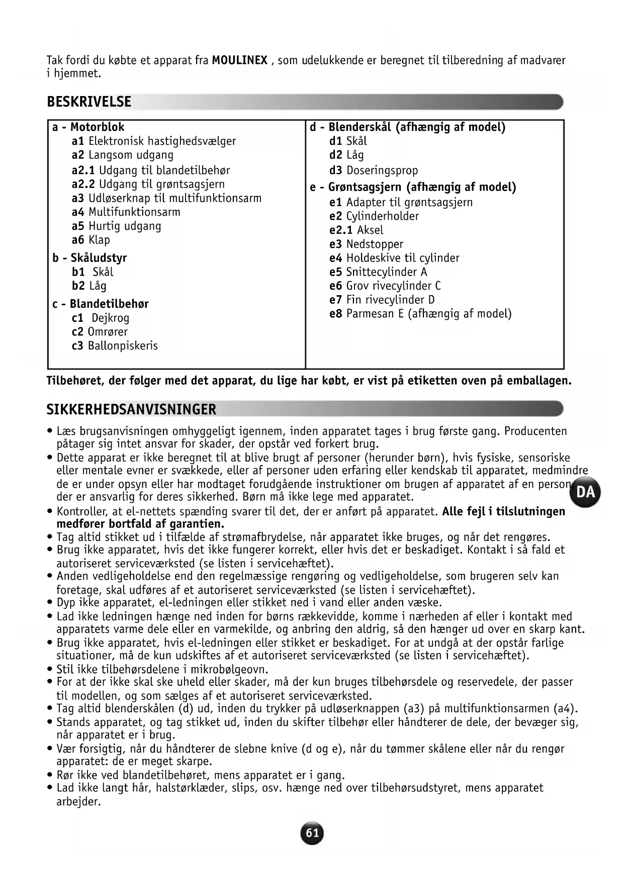 Tak fordi du kobe et apparat fra MOULINEX, som udelukkende er beregnet til tilberedning af madvarer i hjemmet.