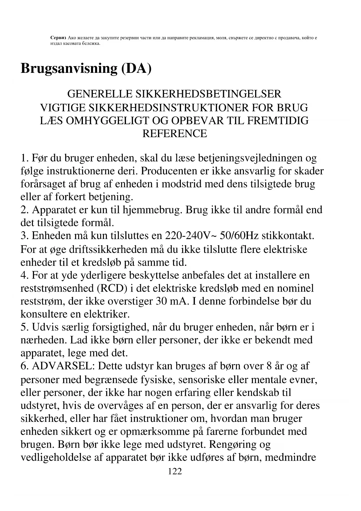6. ADVARSEL: Dette udstyr kan bruges af børn over 8 år og af