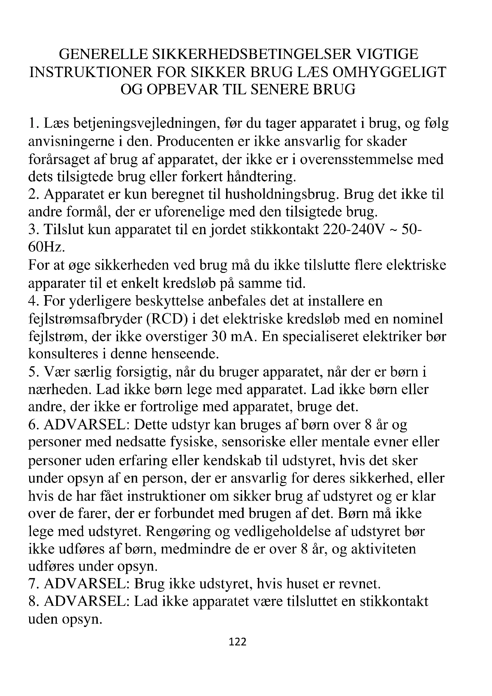 6. ADVARSEL: Dette udstyr kan bruges af børn over 8 år og
