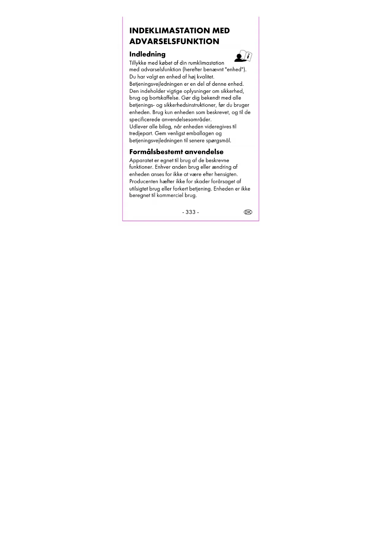 Betjenings- og sikkerhedshenvisninger ..................... - 331
