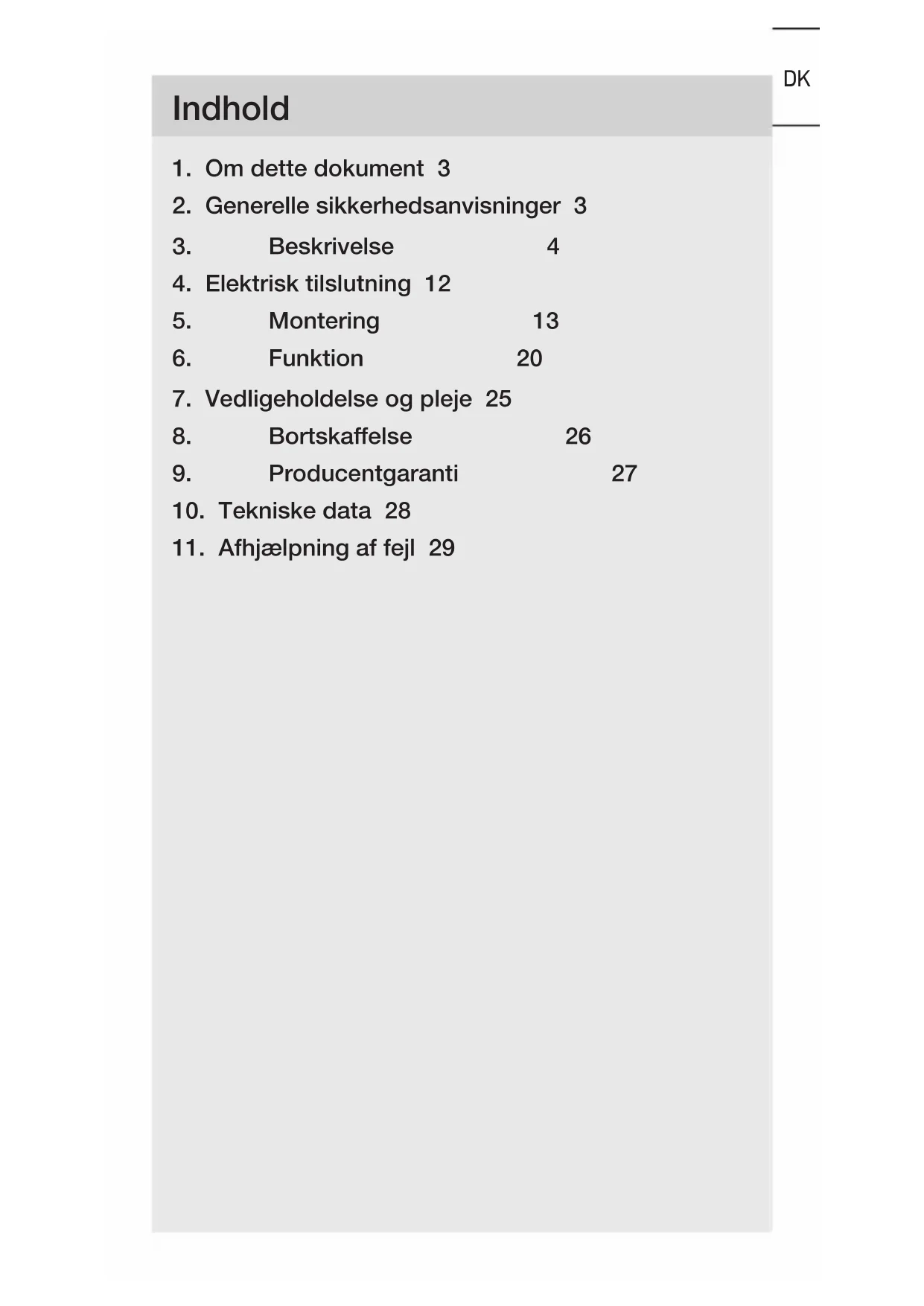 - Skru dækslet på tilslutningsboksen.– 19 – Indhold DKDK