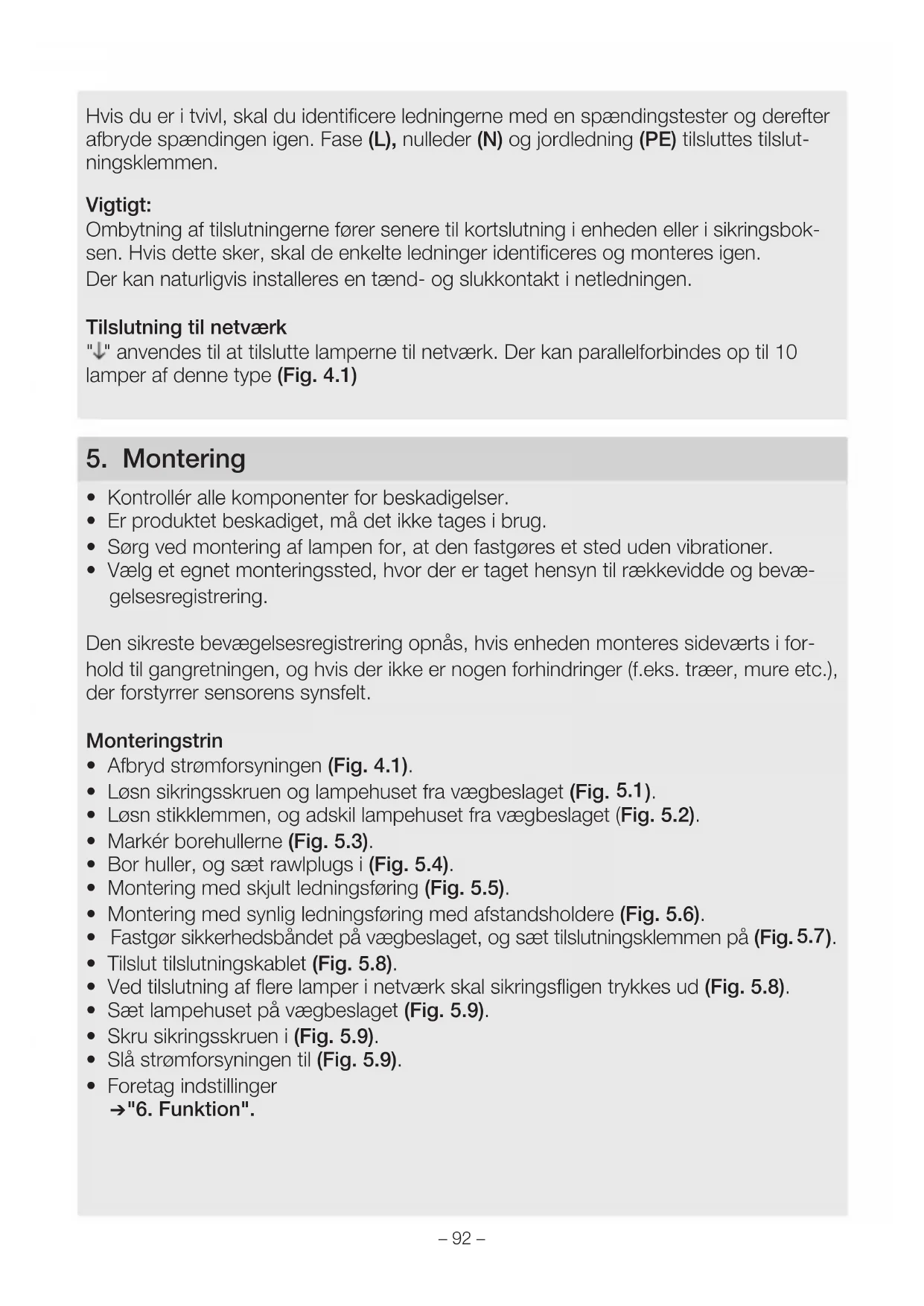 - Sæt lampehuset på vægbeslaget (Fig. 5.9).