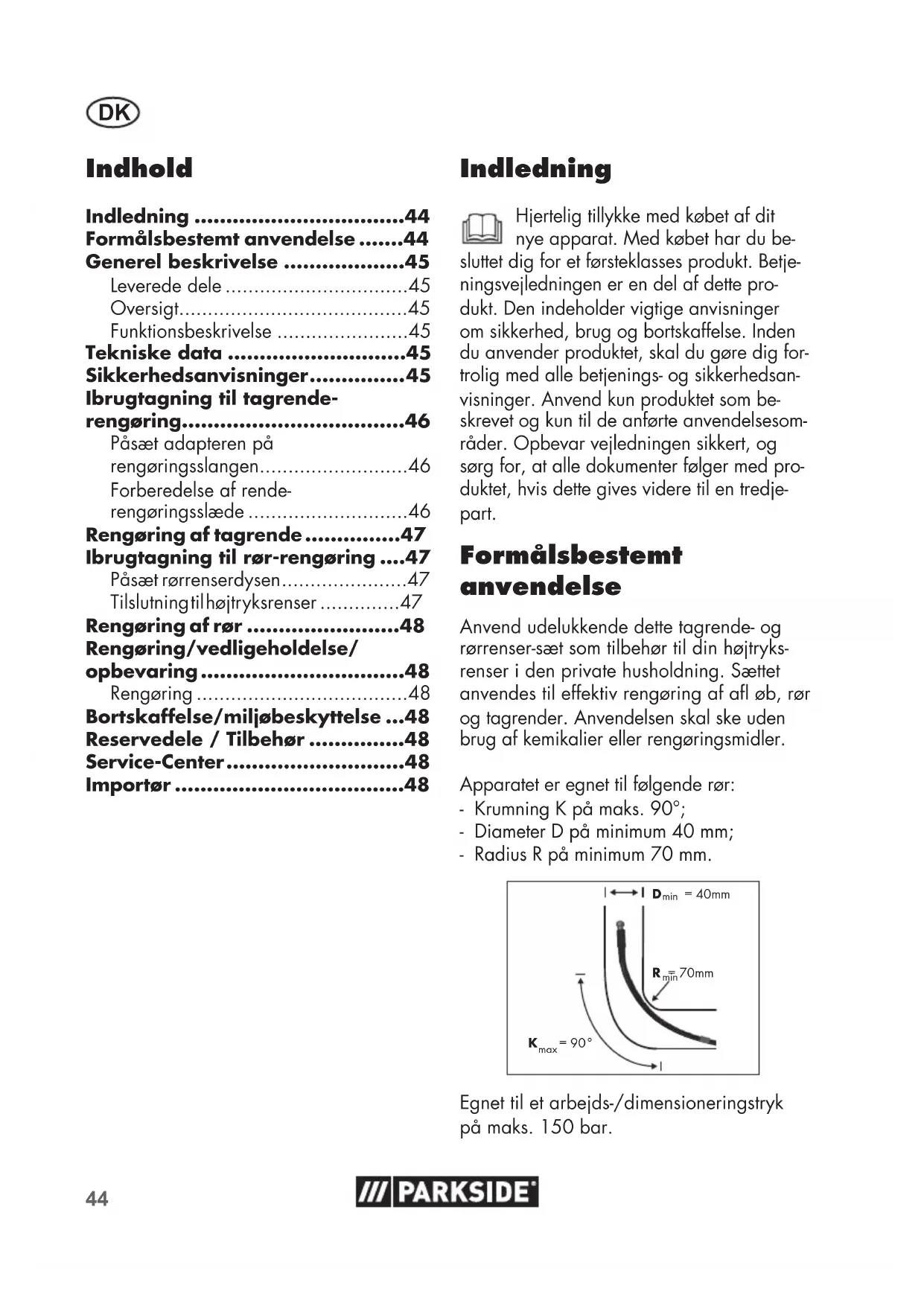- Anvend kun apparatet ved trykbestandige og tætte rør og afl øb, for at undgå beskadigelser.