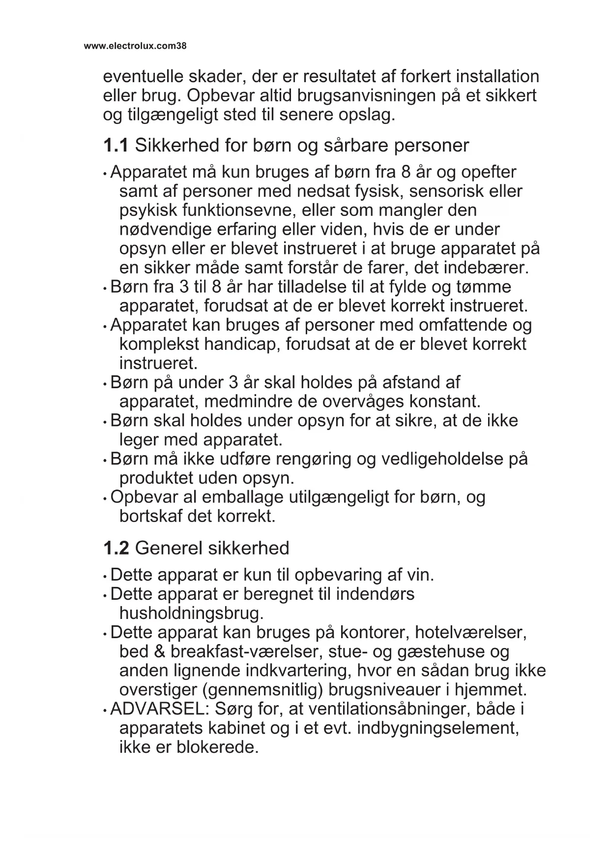 - Børn fra 3 til 8 år har tilladelse til at fylde og tømme apparatet, forudsat at de er blevet korrekt instrueret.