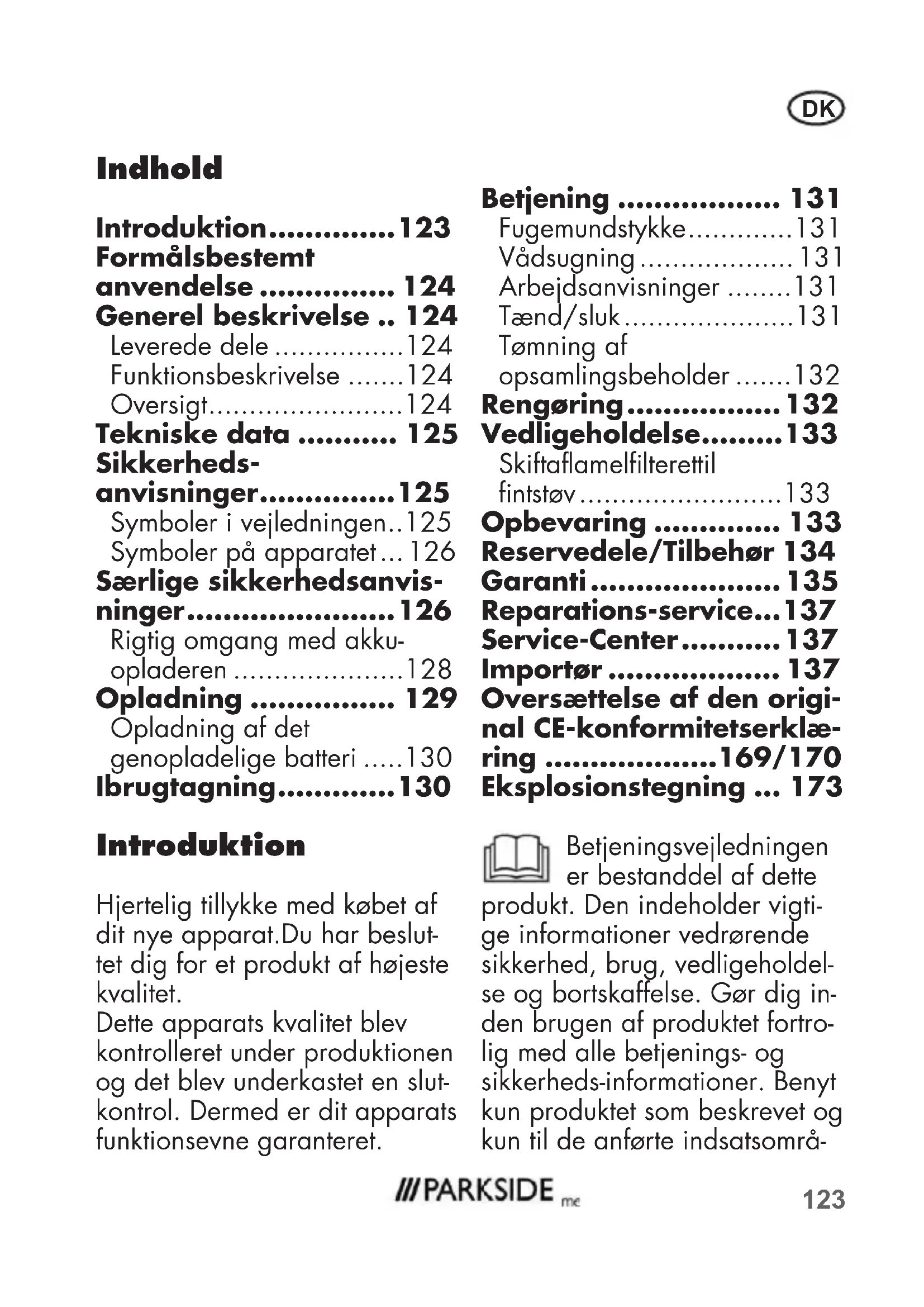 - Reservedele/Tilbehør 134 Garanti p. 135