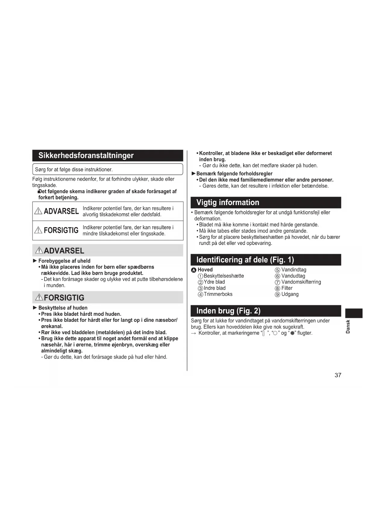 Det er ikke egnet til hår under 0,5 mm.39 Dansk Vedligeholdelse