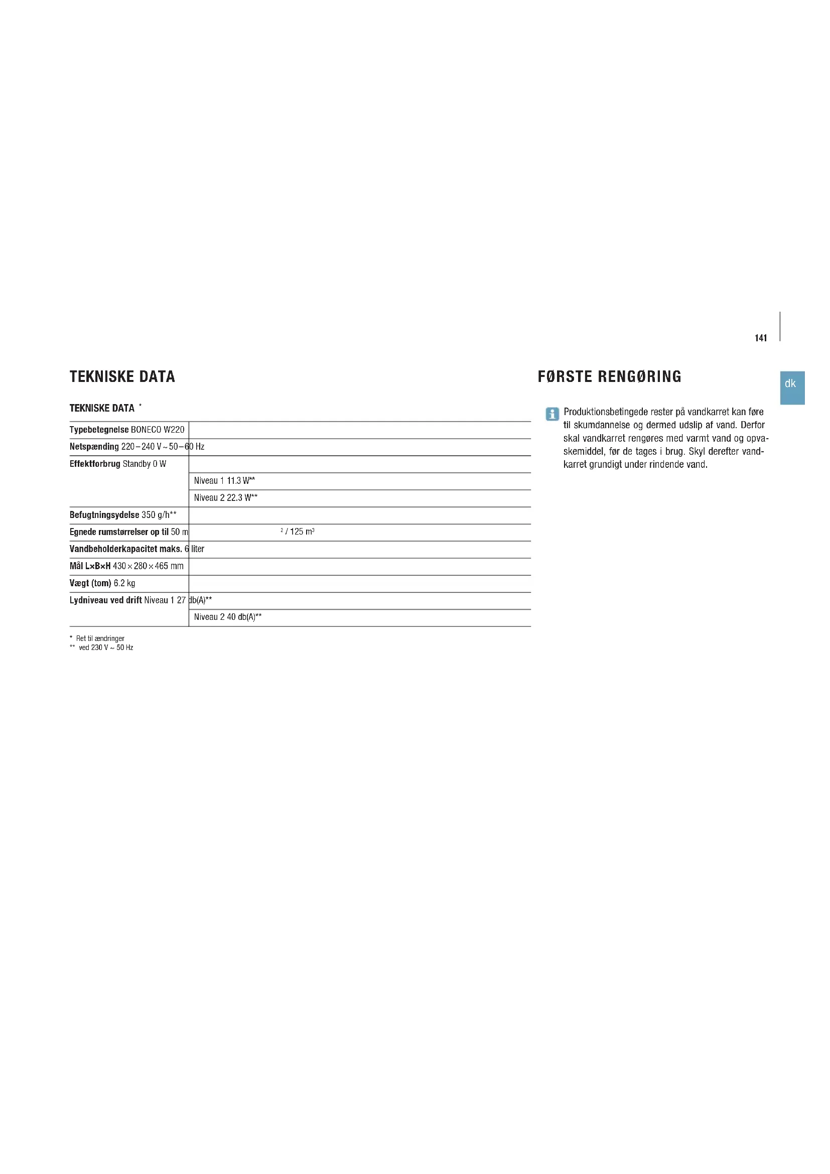 Find enhedens vejledning gratis W220 BONECO i PDF-format.
