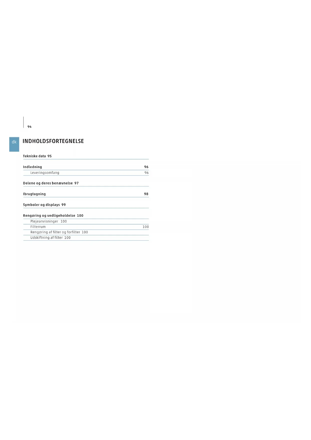 Udskiftning af filter 100