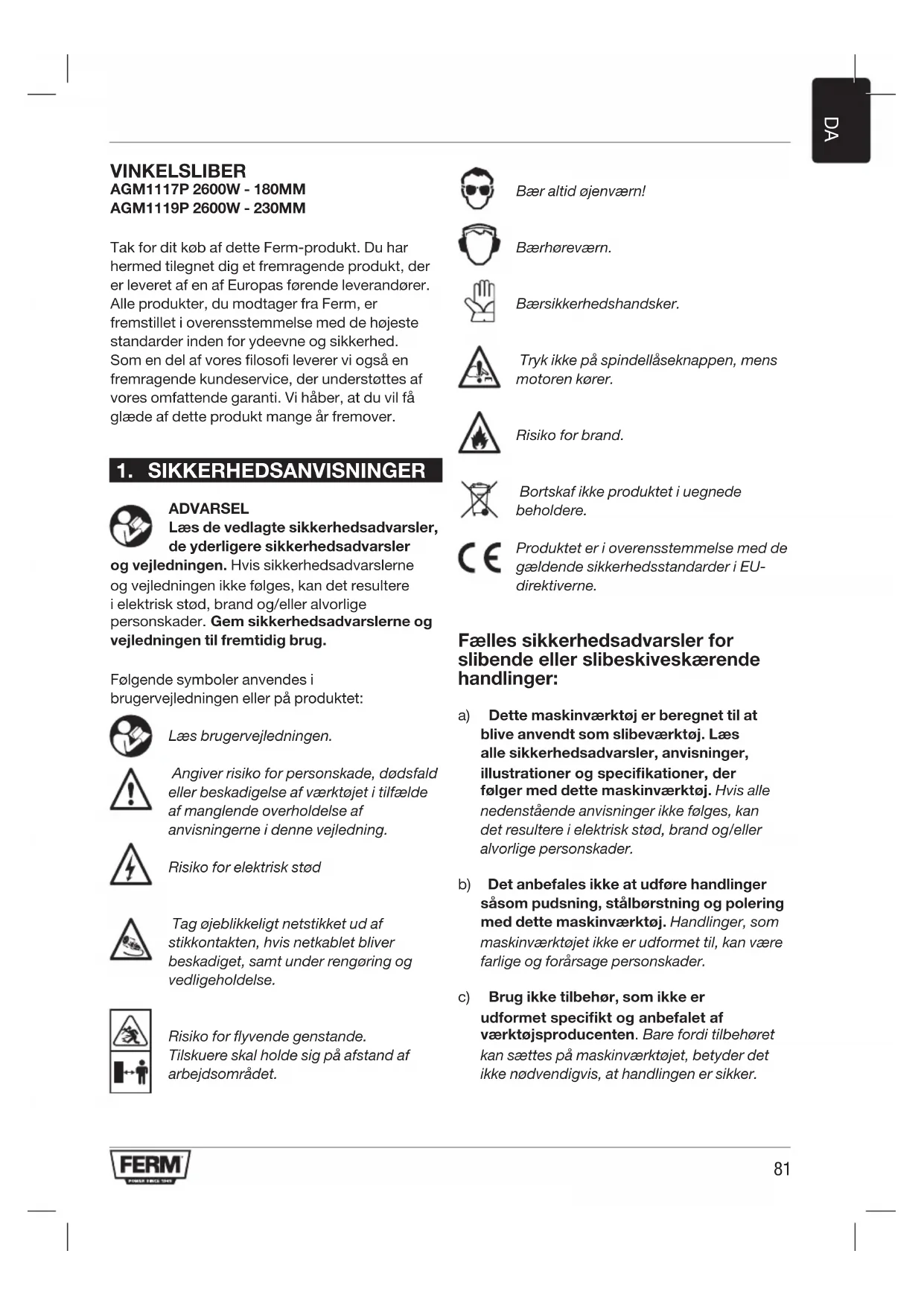 Tak for dit kob af dette Ferm-product. Du har hermed tilegnet dig et fremragende produit, der er leveret af en af Europas forende leverandorer. Alle Produkter, du modtager fra Ferm, er fremstillet i overensstemmelse med de højeste standarder inden for ydeevne og sikkerhed. Som en del af vores filosofi leverer vi ogsa en fremragende kundeservice, der understottes af vores omfattende garanti. Vi haber, at du vil fag glaede af dette produit mange ar fremover.