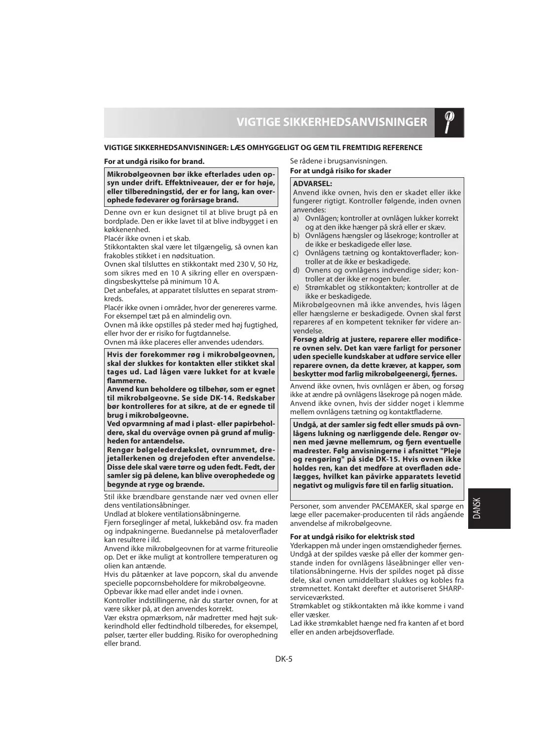 VIGTIGSE SIKKERHEDSANVISNINGER 5-7