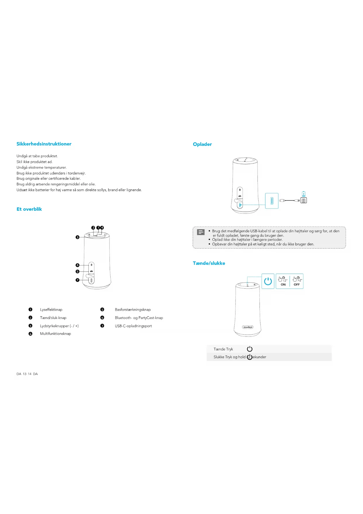 - Opbevar din højttaler på et køligt sted, når du ikke bruger den. Tænde/slukke