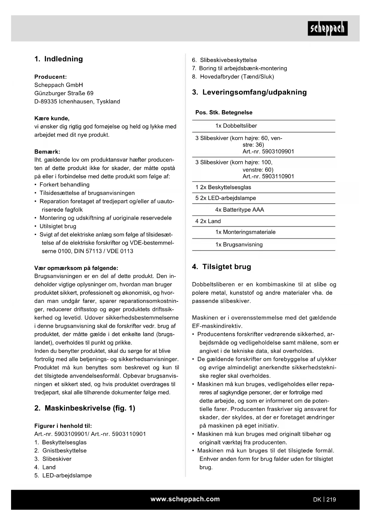Find enhedens vejledning gratis SM200AL SCHEPPACH i PDF-format.