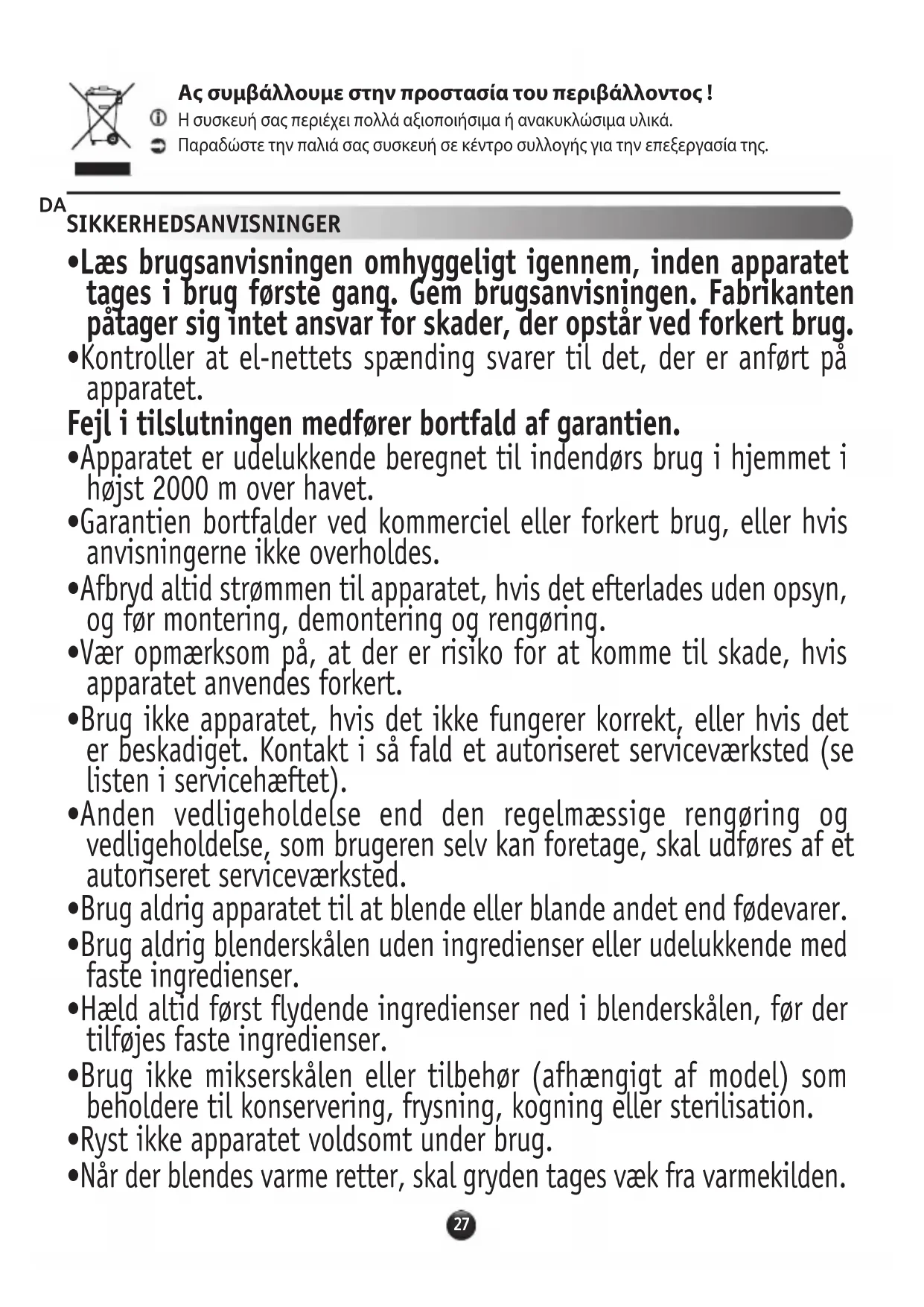 - Når der blendes varme retter, skal gryden tages væk fra varmekilden. DA28