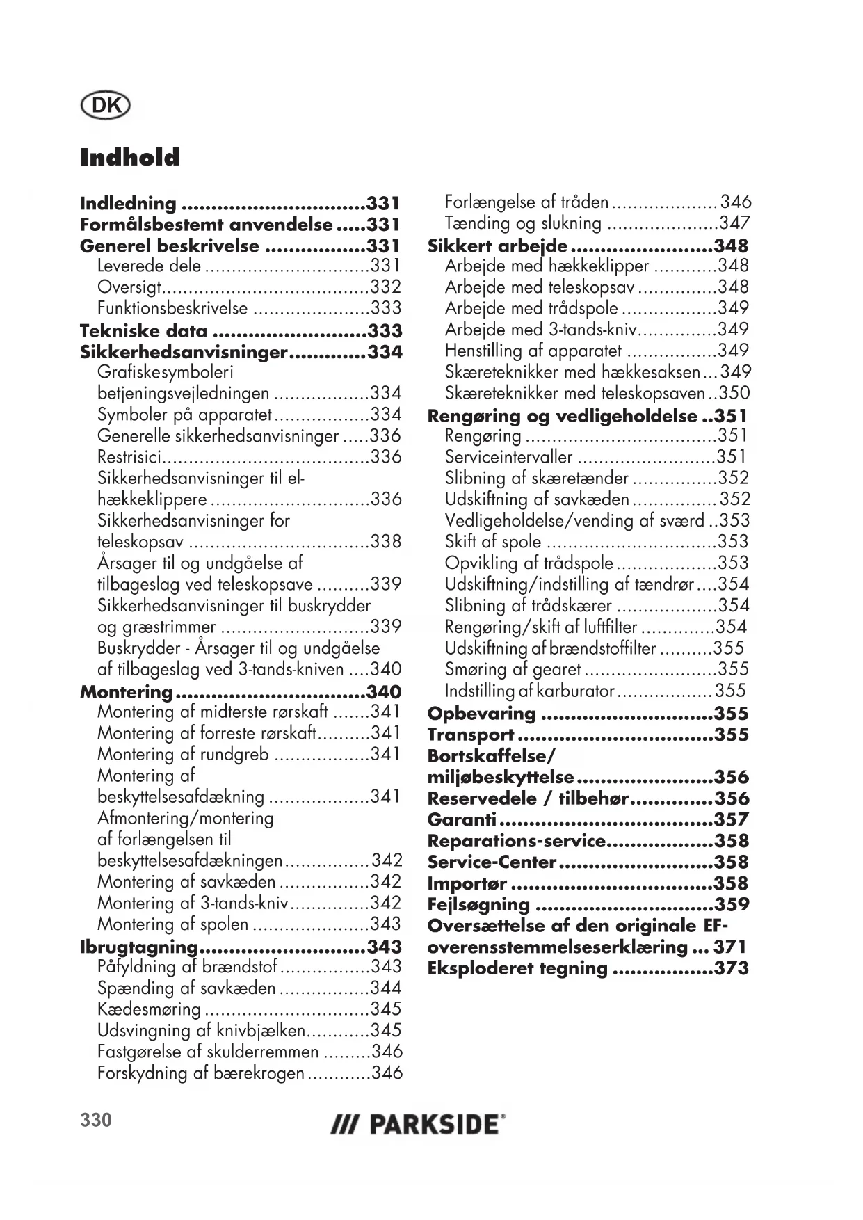 DK Oversættelse af den originale driftsvejledning Side 330A