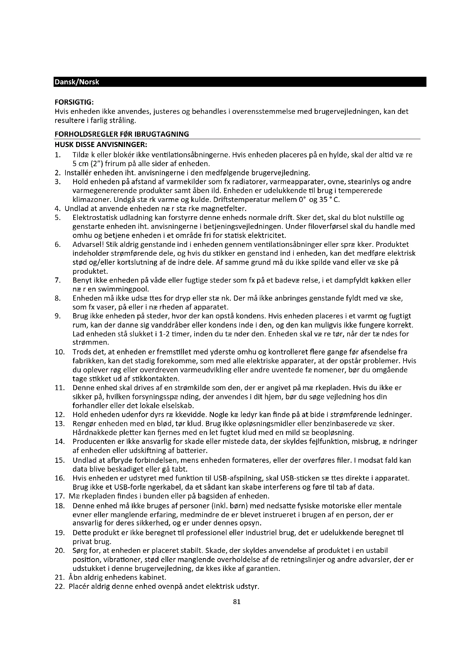 22. Placér aldrig denne enhed ovenpå andet elektrisk udstyr.82