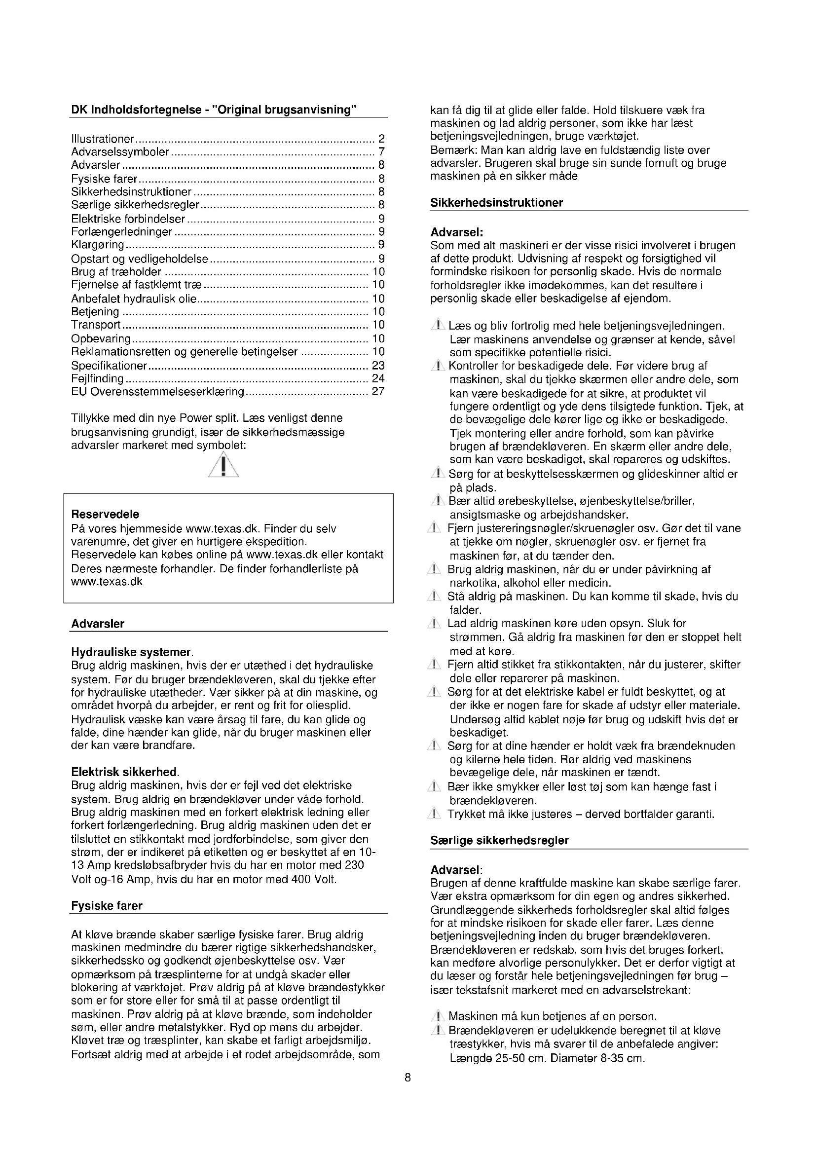 BRUGSANVISNING Power Split 830V Texas