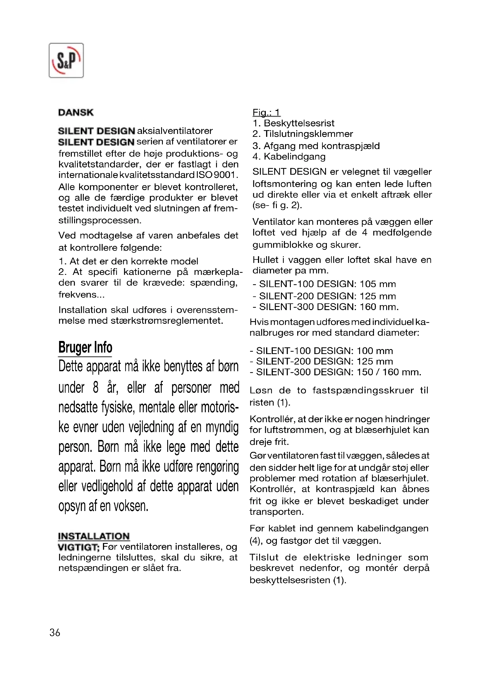 SILENT DESIGN - Ventilator Soler & Palau - Gratis brugsanvisning og manual