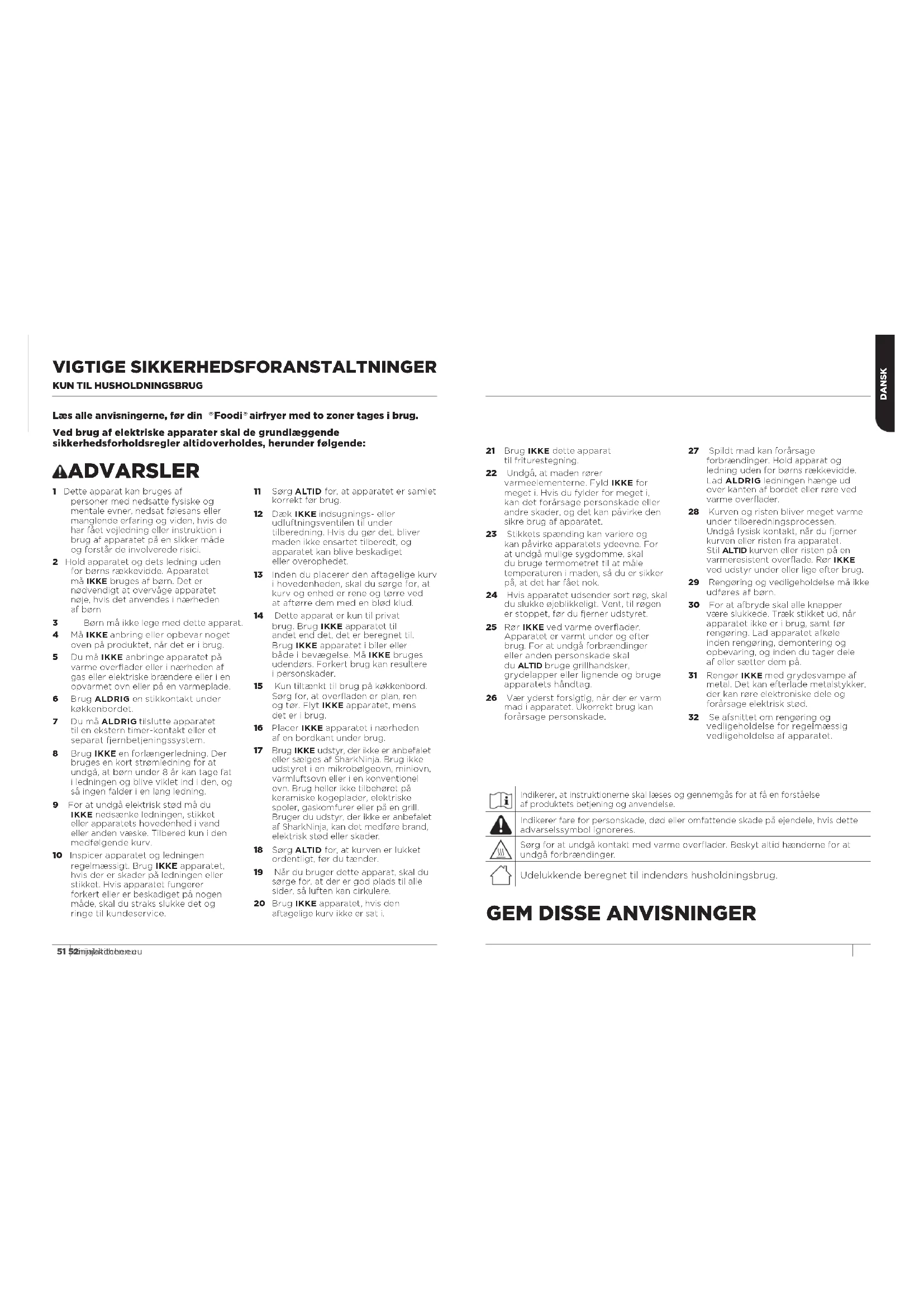 17 Brug IJKKE udstr. der ikk or anbefaleit, erer saes af SharkNinja. Brug ikke udstryret i en mikrobalgevna, minovin, varmlutfoyn erer ien konventionel ovn. Brug heller nikke tulehret, pa keramiske kogepiander, elektriske spoler, gaskomfurer erer pa en grill Bruger du udstr. der ikk er ancefalet at SharkNinja, kan det medzre brancs, ecktrisk sted erer skader.
