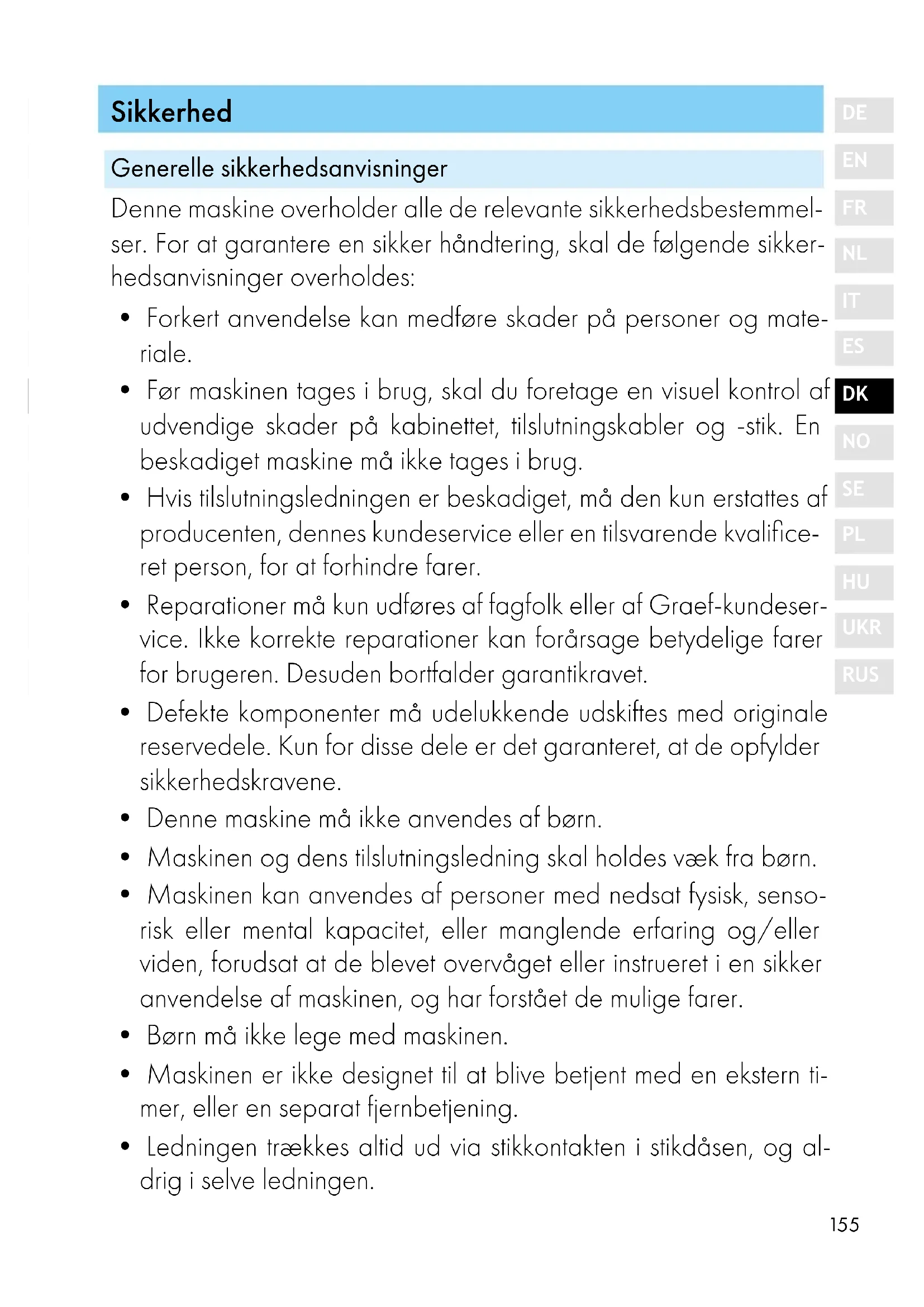 - Reparationer må kun udføres af fagfolk eller af Graef-kundeser- vice. Ikke korrekte reparationer kan forårsage betydelige farer for brugeren. Desuden bortfalder garantikravet.
