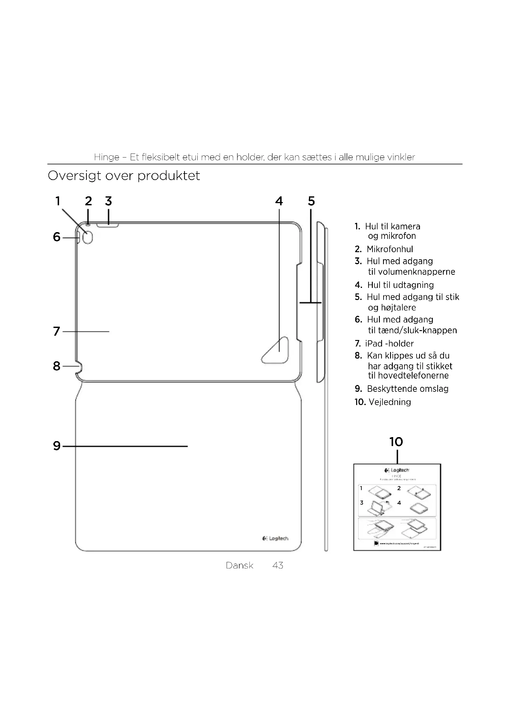 Download vejledningen til din Tilbehør til tablet i PDF-format gratis! Find din vejledning Hinge - LOGITECH og tag din elektroniske enhed tilbage i hånden. På denne side er alle dokumenter nødvendige for brugen af din enhed offentliggjort. Hinge af mærket LOGITECH.