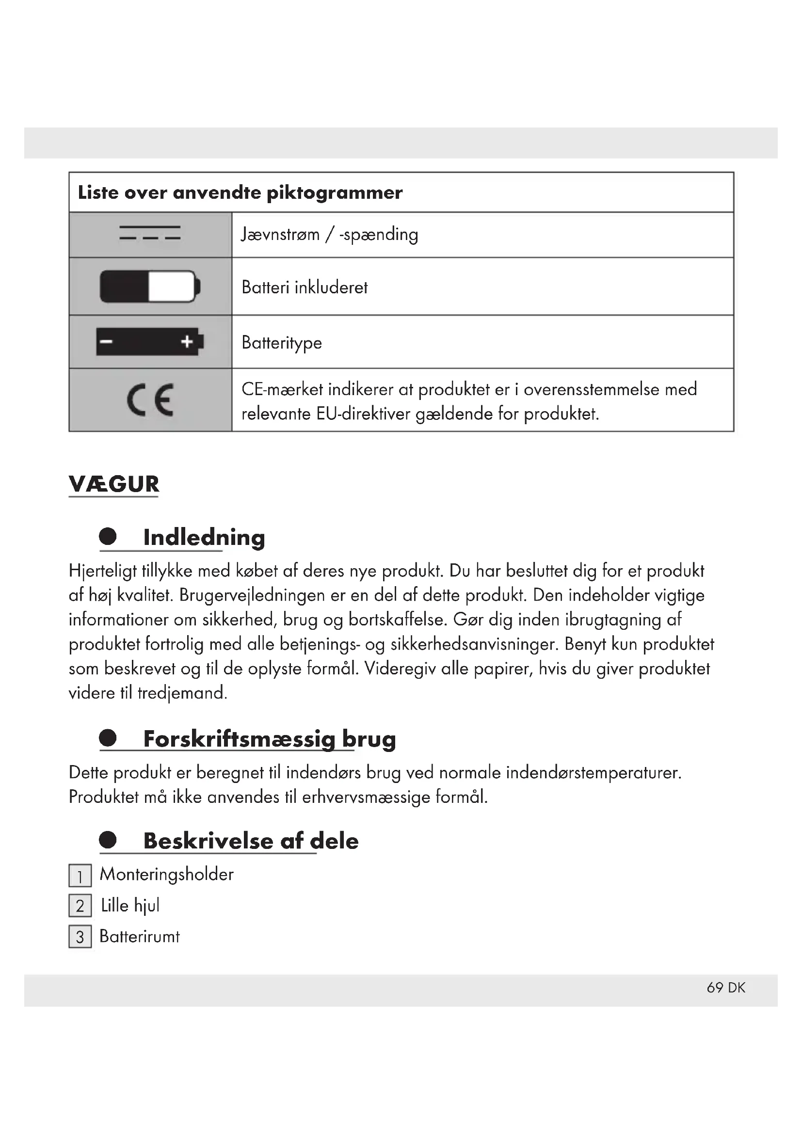 Hjerteligt tillykke med købet af deres nye produkt. Du har besluttet dig for et produit af høj kvalitet. Brugervejledningen er en del af dette produkt. Den indeholder vigtige informationer om sikkerhed, brug og bortskaffelse. Gør dig indenibrugtagning af Produktet fortrolig med alle betjenings- og sikkerhedsanvisninger. Benyt kun produktet som beskrevet og til de oplyste formål. Videregiv alle papirer, hvis du giver Produktet videre til tredjemand.