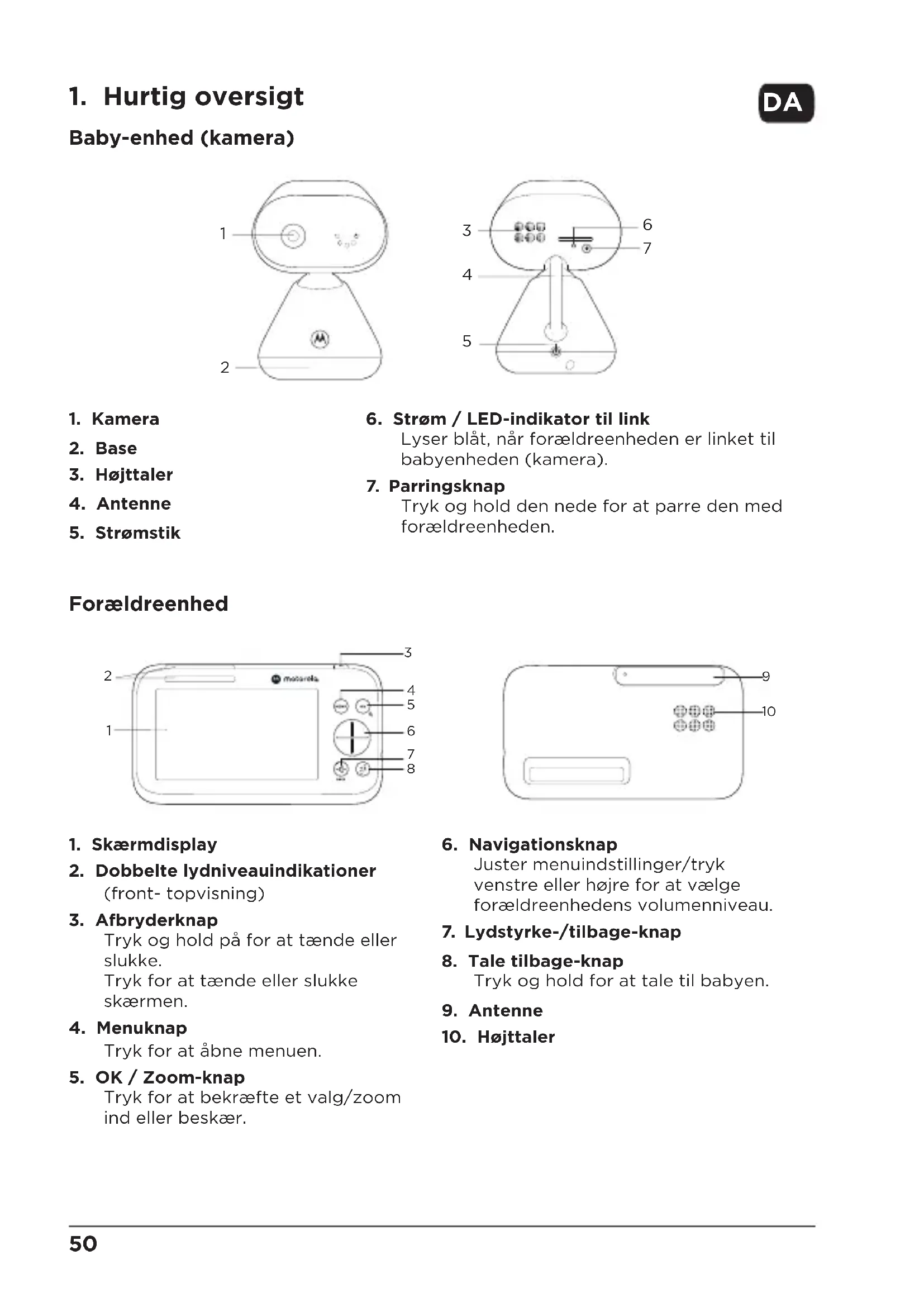 slukke den. Bemærk Brug kun den medfølgende strømadapter (5V jævnstrøm / 1500 mA). Tryk og hold52 Par babyenheden (kamera) med forældreenheden Vi har parret babyenheden med forældreenheden i pakken. I tilfælde af, at du vil parre et ekstra kamera, så tryk og hold på bagsiden af babyenheden (kamera) i mere end 5 sekunder.