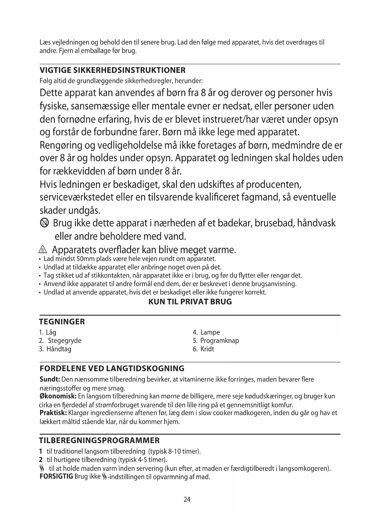 Dette apparat kan anvendes af børn fra 8år og derover og personer hvis fysiske, sansemæssige eller mentale evner er nedsat, eller personer,uden den fornødne erfaring,hvis de er blevet instrueret/har vær et under opsyn og forstår de forbundne farer. Børn må ikke lege med apparatet.