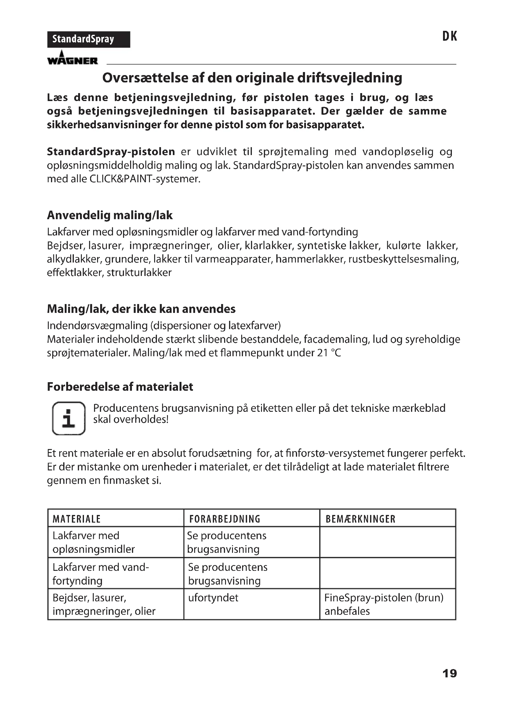 Find enhedens vejledning gratis StandardSpray WAGNER i PDF-format.