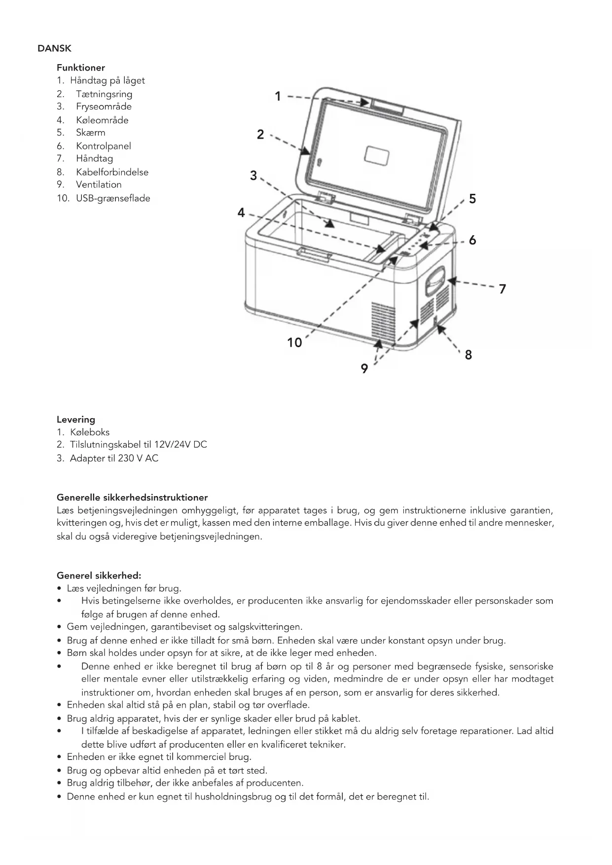 - Denne enhed er kun egnet til husholdningsbrug og til det formål, det er beregnet til. DANSKSikkerhed under brug