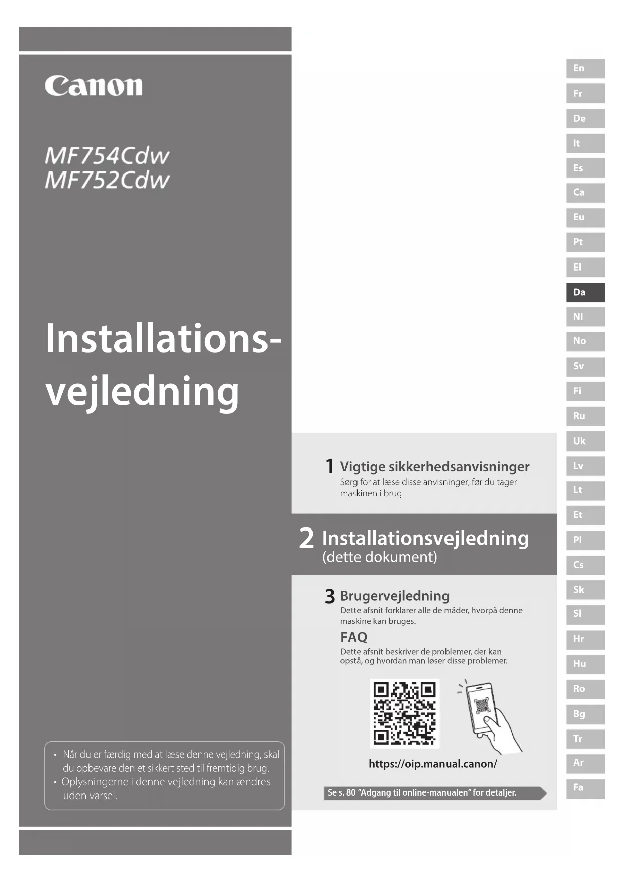 Installationsvejledning (dette dokument) Installations- vejledning https://oip.manual.canon/