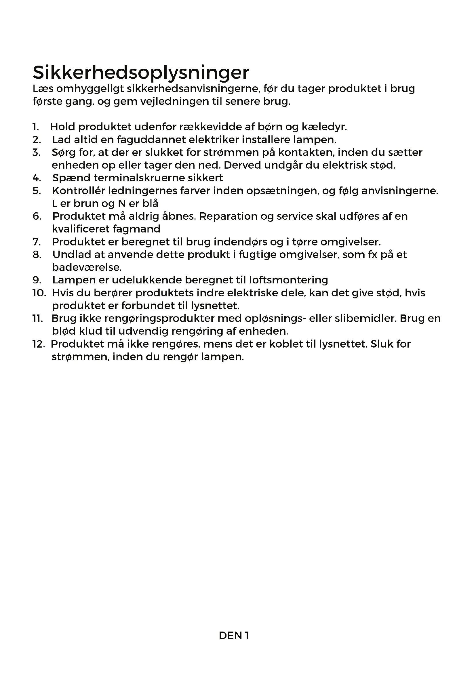 1. Hold produktet udenfor rækkevidde af børn og kæledyr.