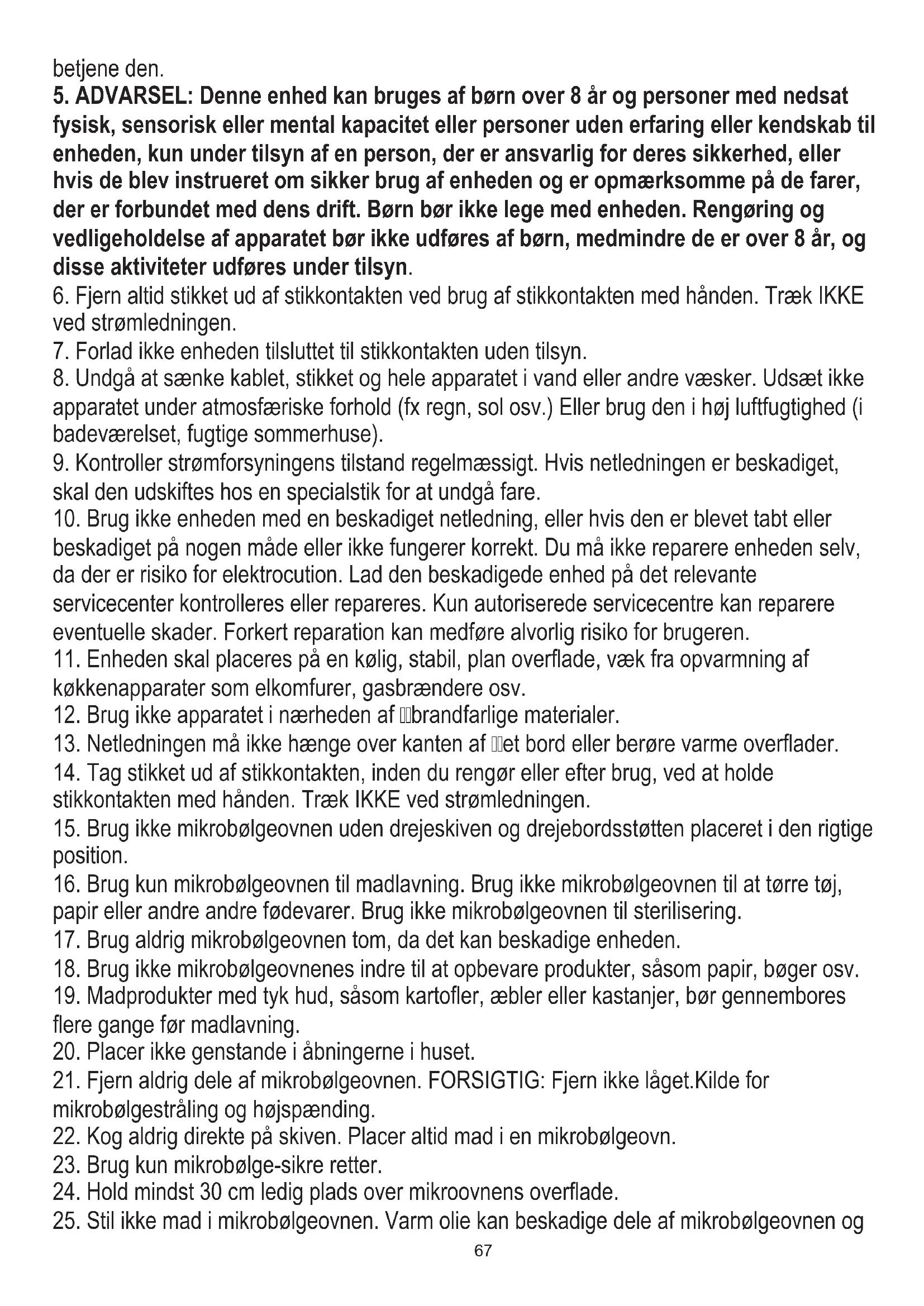 5. ADVARSEL: Denne enhed kan bruges af børn over 8 år og personer med nedsat