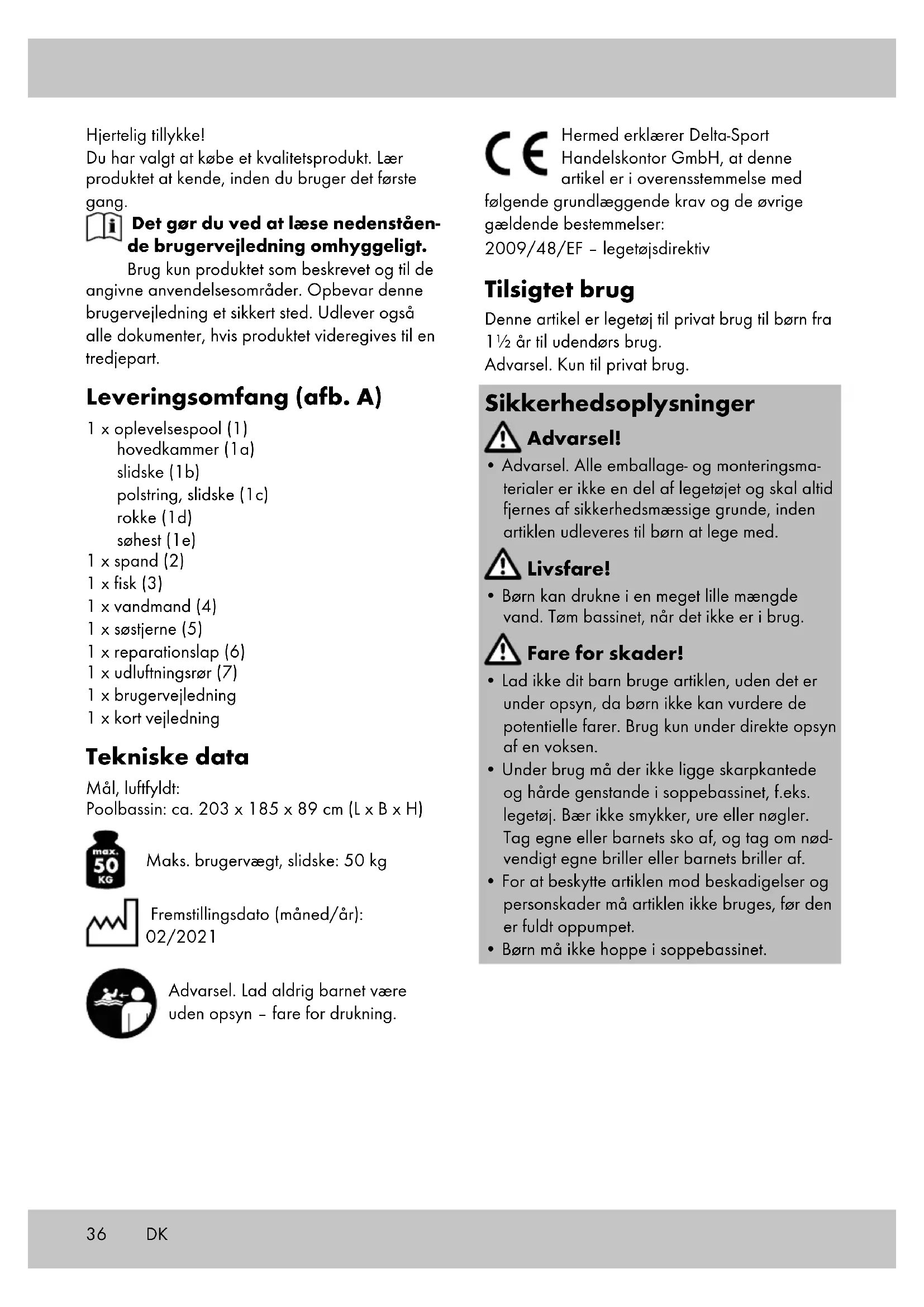 - For at beskytte artiklen mod beskadigelser og personskader må artiklen ikke bruges, før den er fuldt oppumpet.