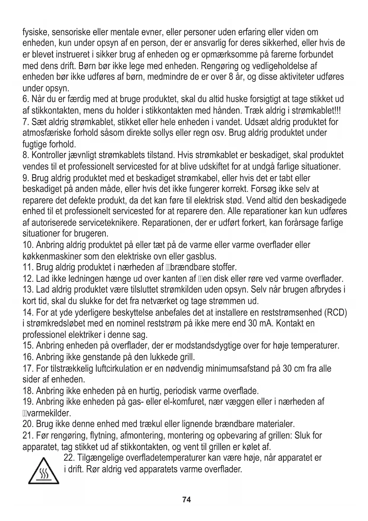 22. Tilgængelige overfladetemperaturer kan være høje, når apparatet er
