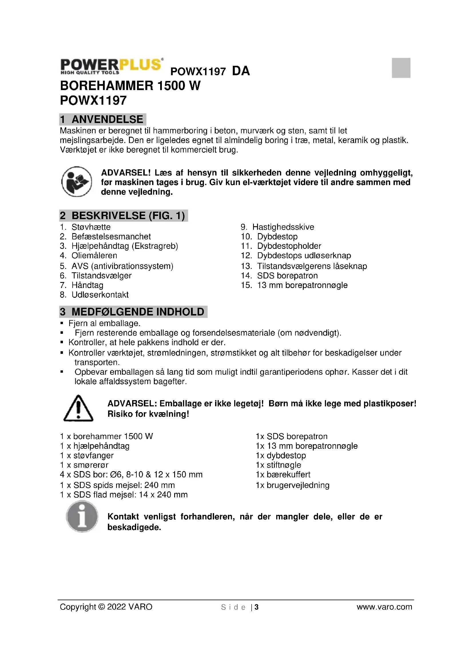 POWX1197 - Boremaskine PowerPlus - Gratis brugsanvisning og manual