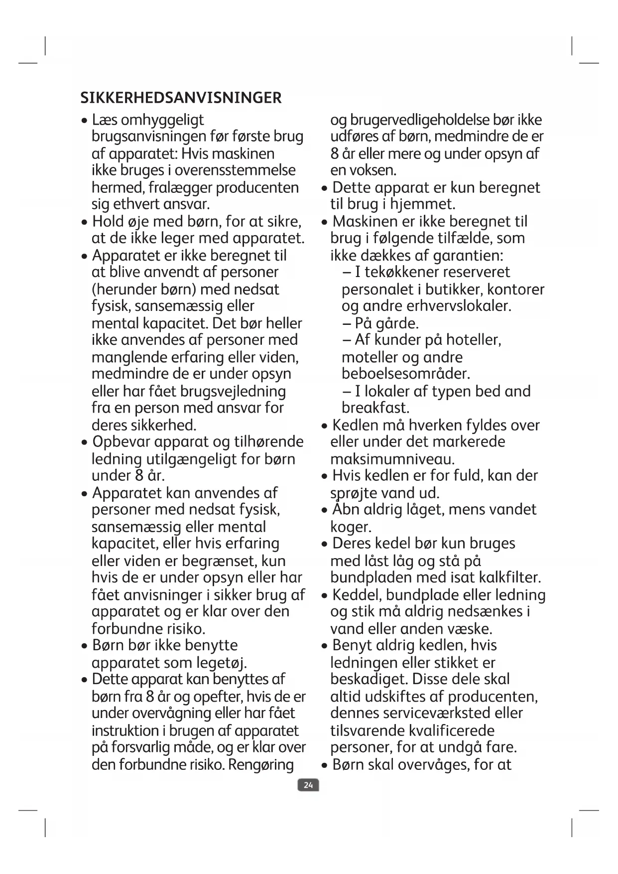 - Børn skal overvåges, for at SIKKERHEDSANVISNINGER25 sikre, at de ikke leger med apparatet.