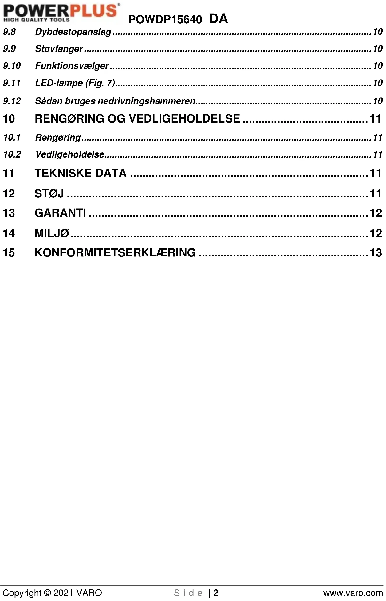 10 RENGØRING OG VEDLIGEHOLDELSE 11