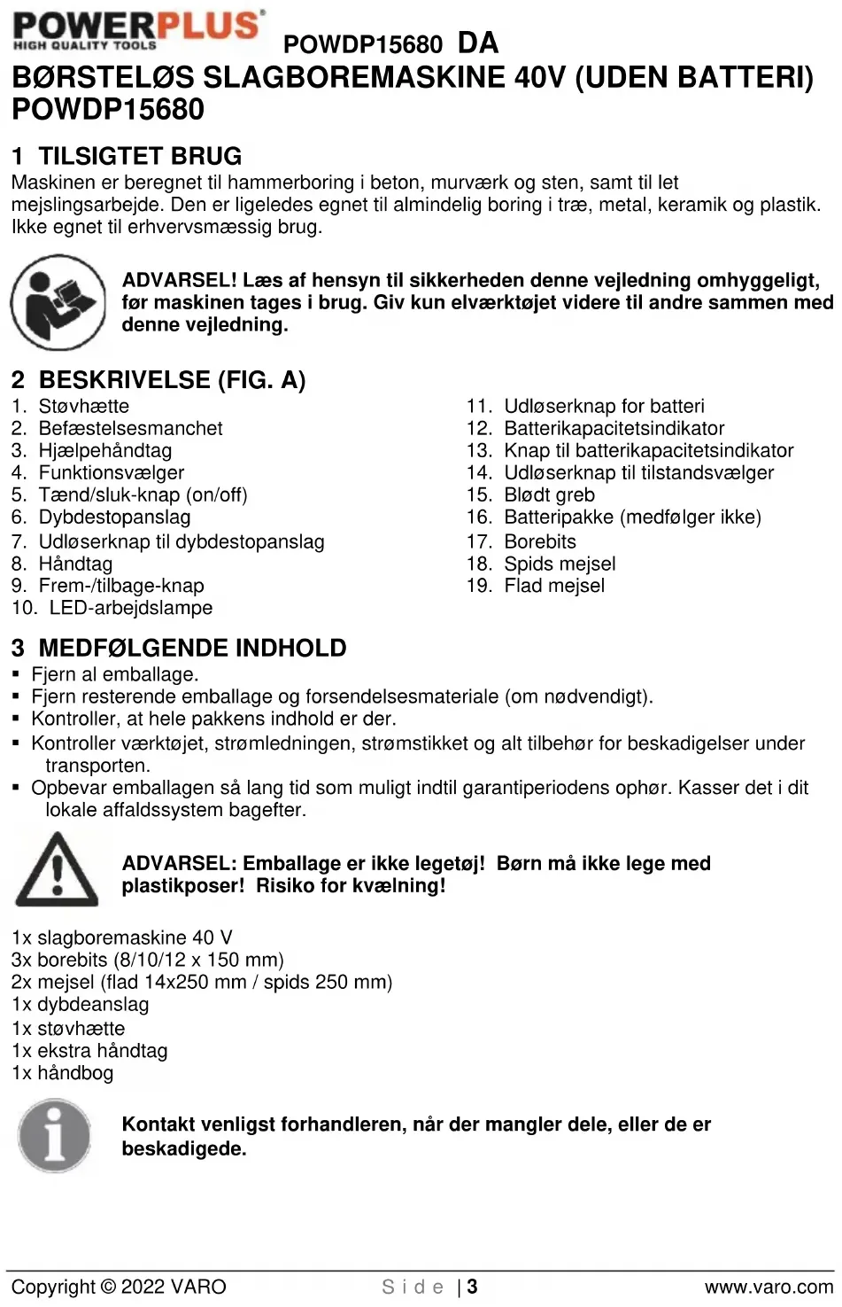POWDP15680 - Boremaskine PowerPlus - Gratis brugsanvisning og manual