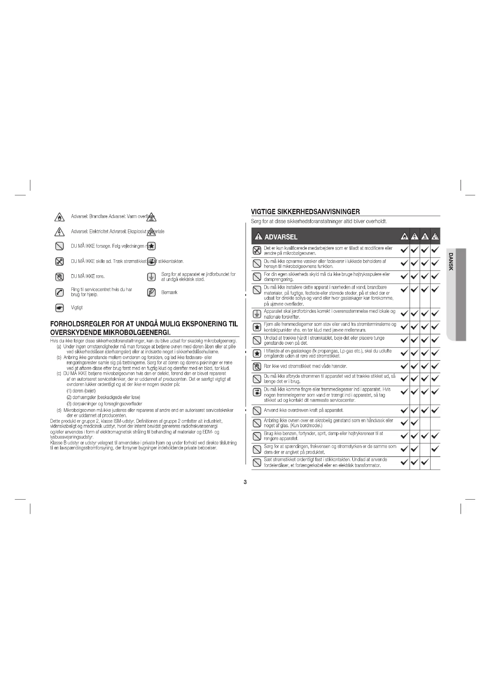 - Forholdsregler for at undgå mulig eksponering til overskydende mikrobølgeenergi p. 3