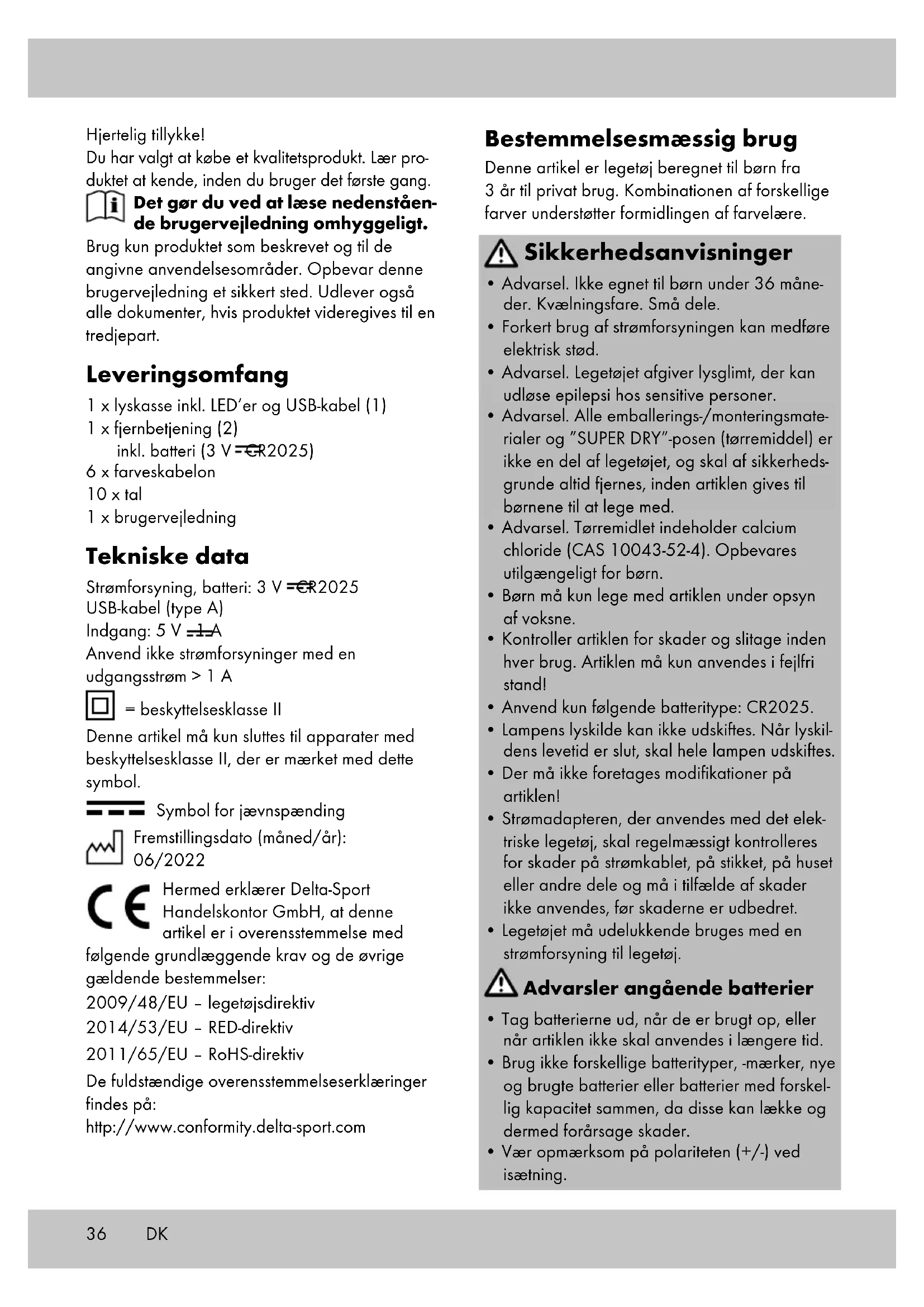 - Advarsel. Legetøjet afgiver lysglimt, der kan udløse epilepsi hos sensitive personer.
