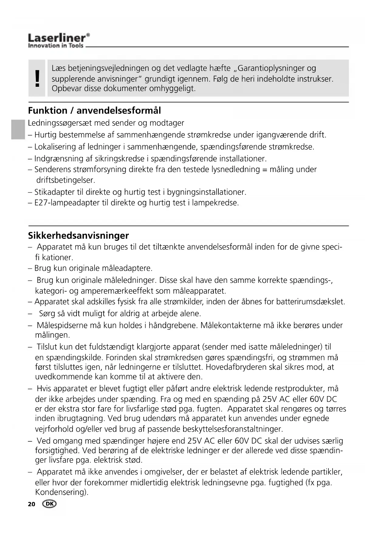 BRUGSANVISNING ACTracer Laserliner
