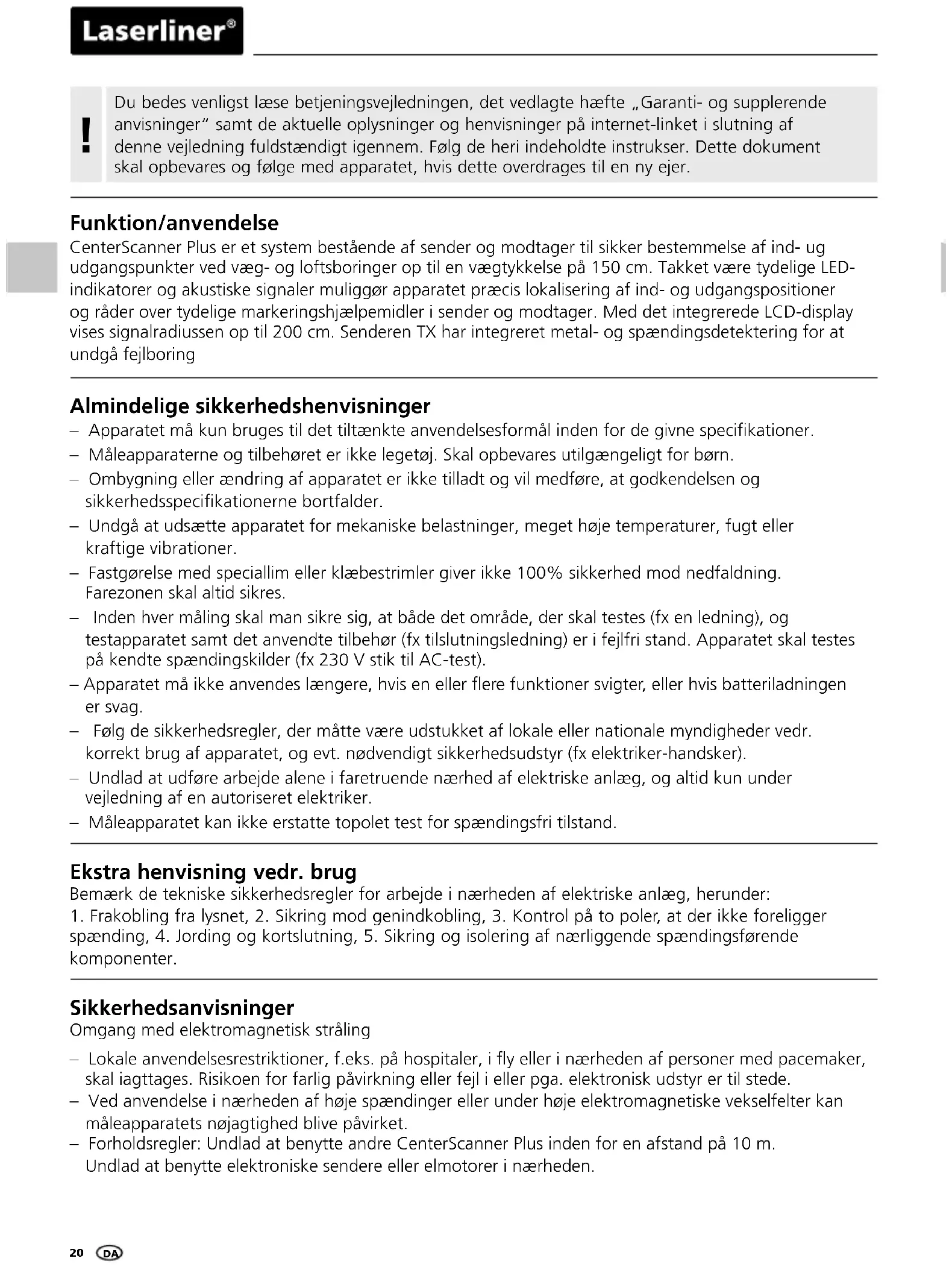 BRUGSANVISNING CenterScanner Plus Laserliner